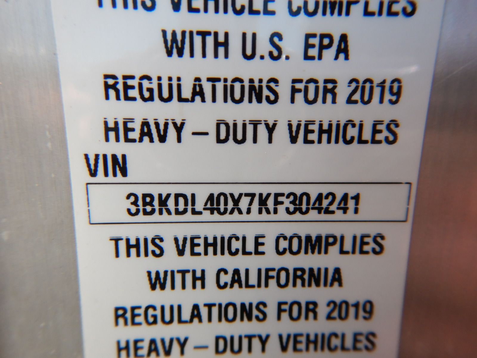 Vehicle ID Number: 3BKDL40X7KF304241