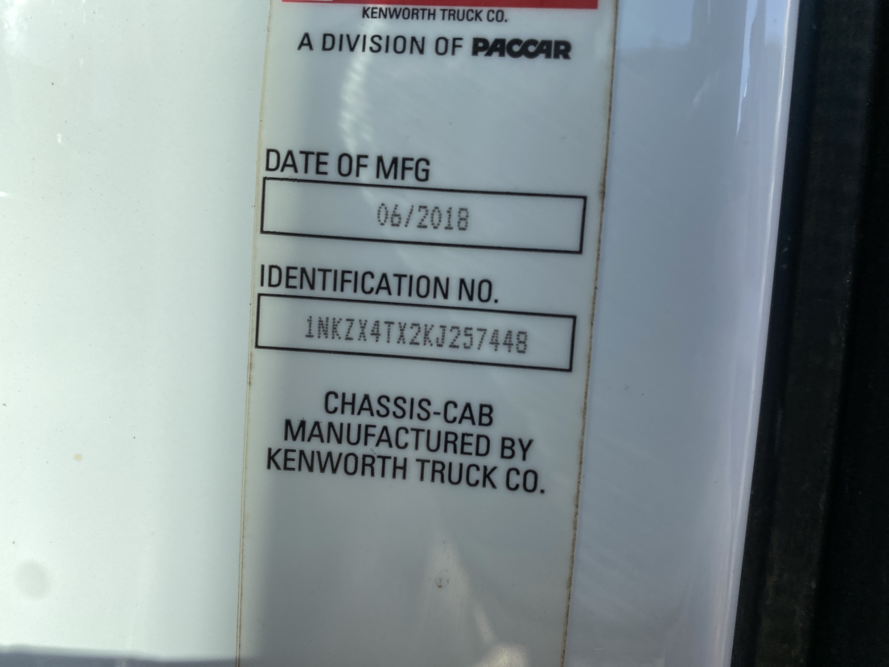 Vehicle ID Number: 1NKZX4TX2KJ257448