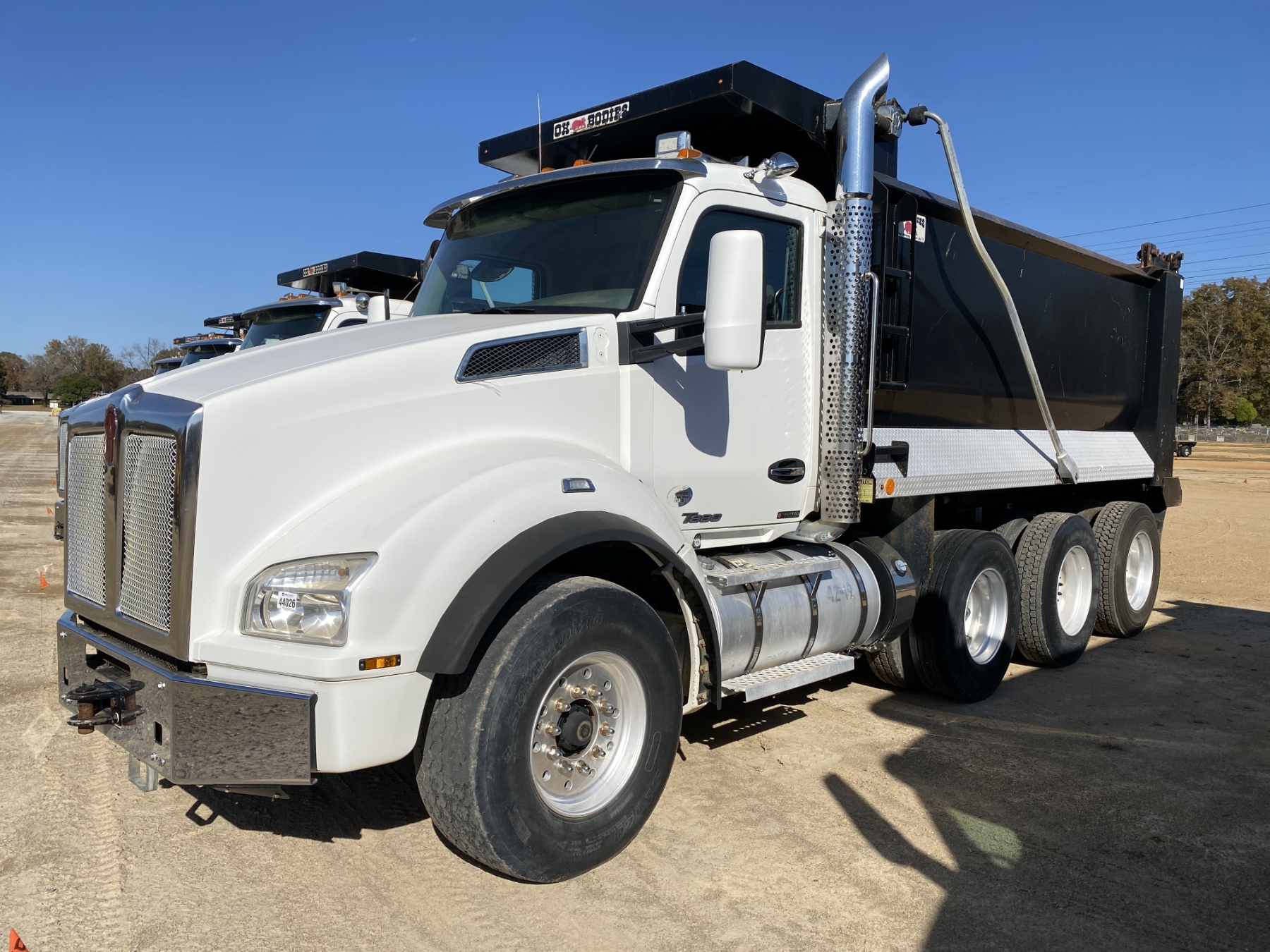Tri Axle, 500 HP Cummins X15 engine, Eaton 8LL trans, 46K rears, 20K front, 16' Hard Ox body, 11R24.5 rear ties, 425/65R22.5 front tires, all alum