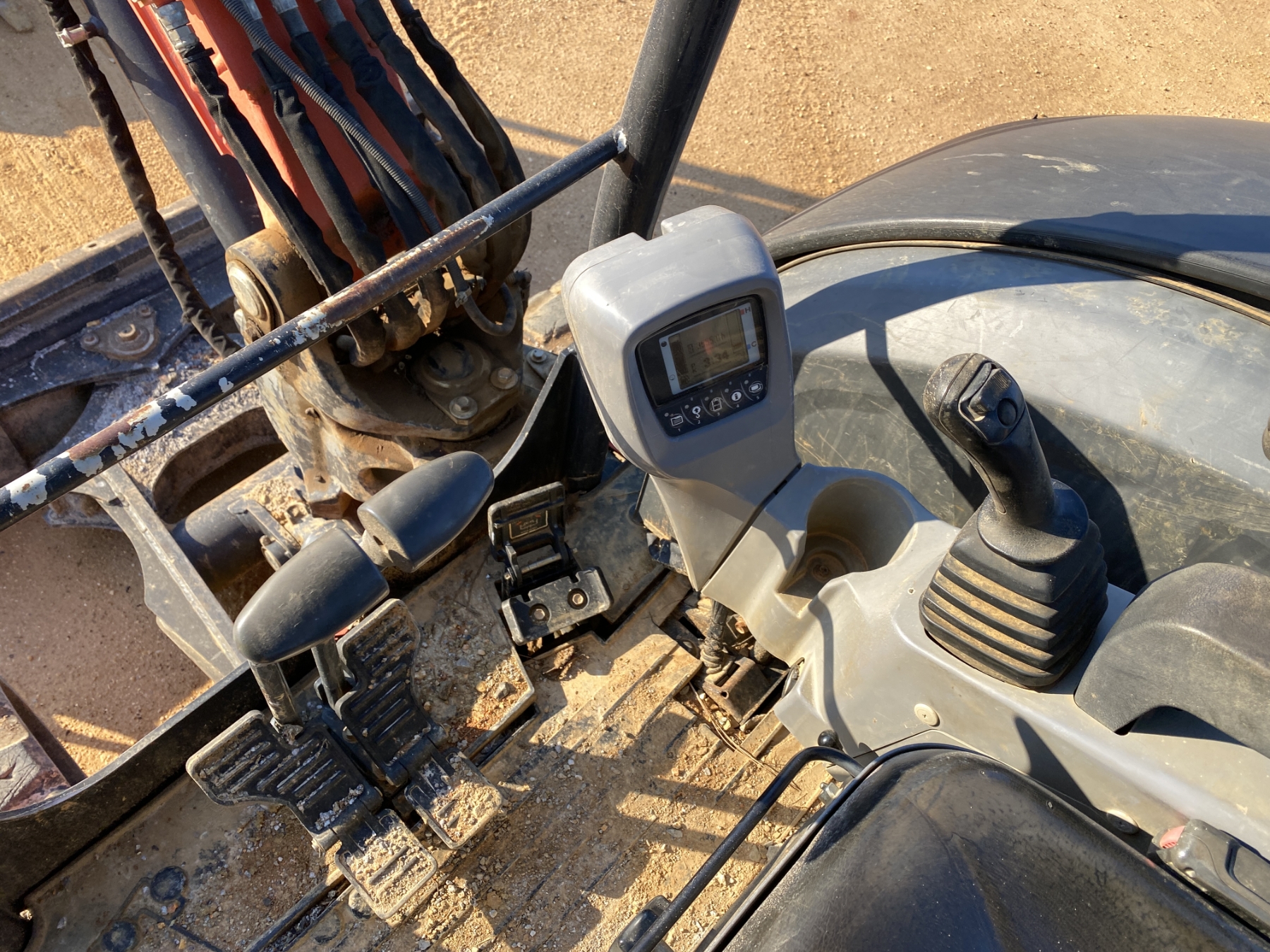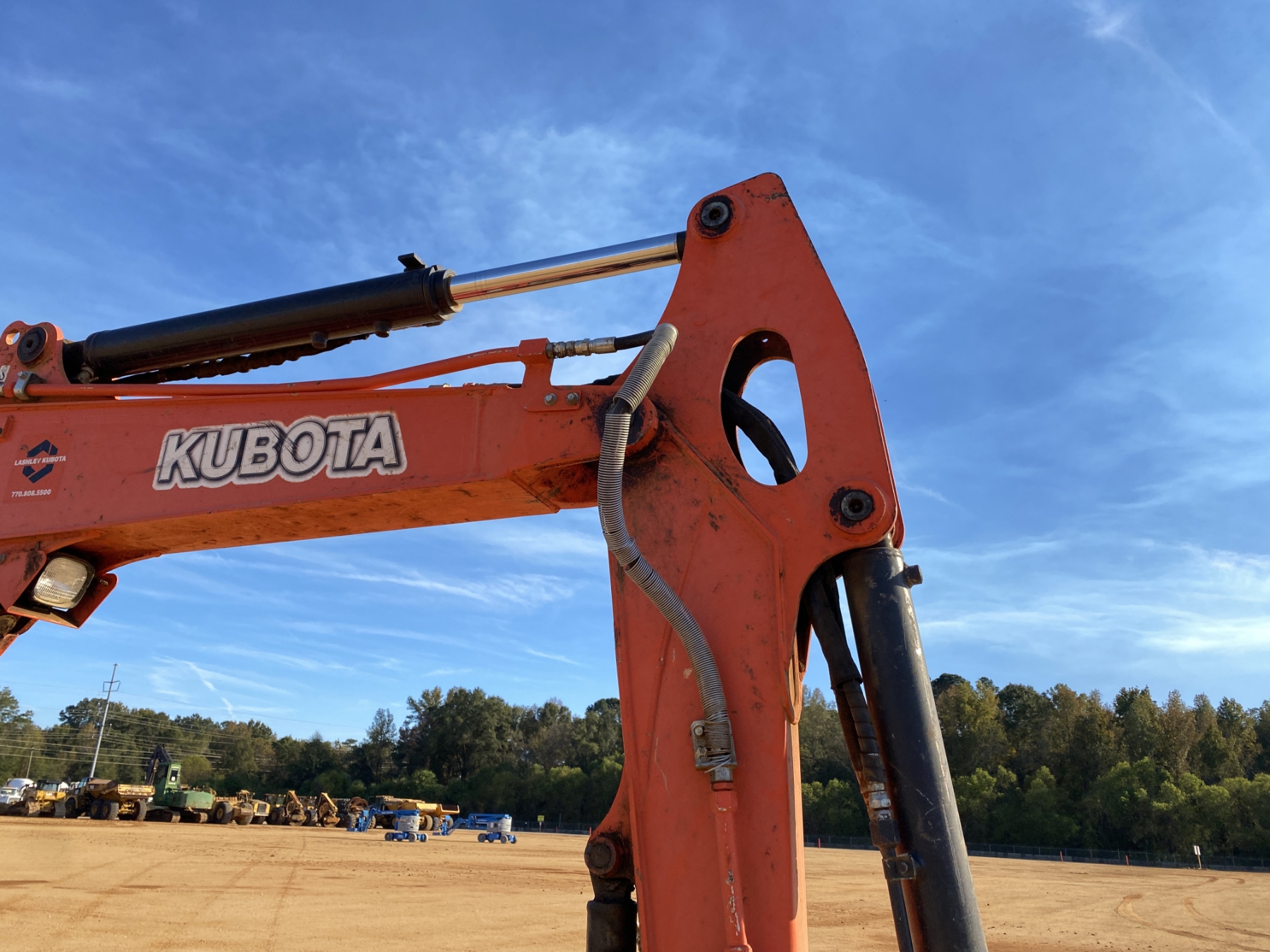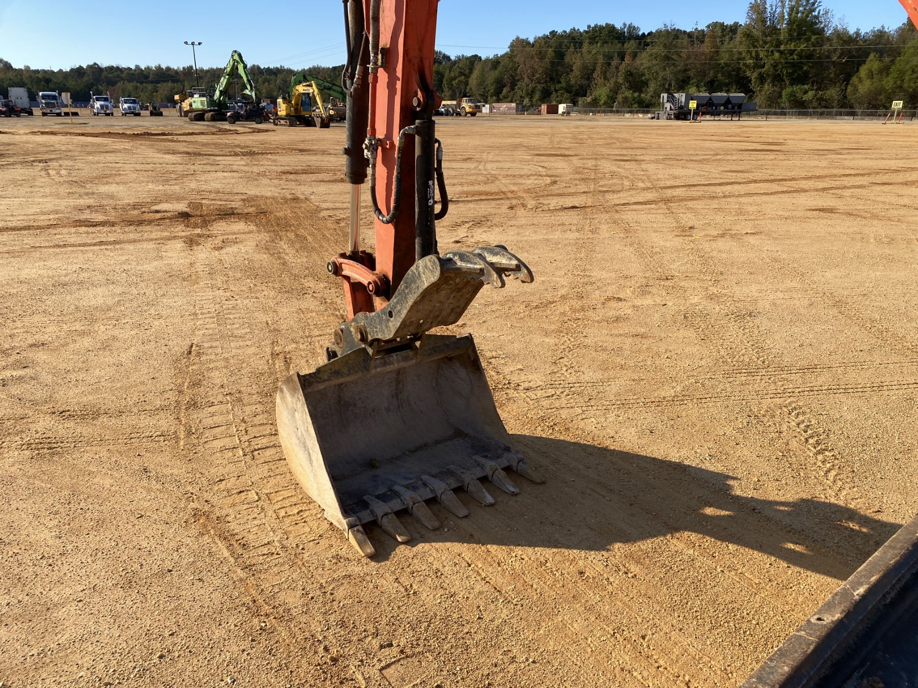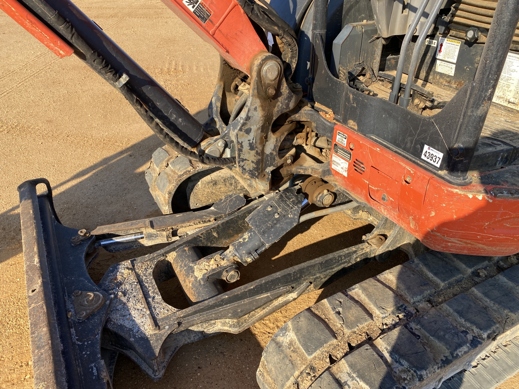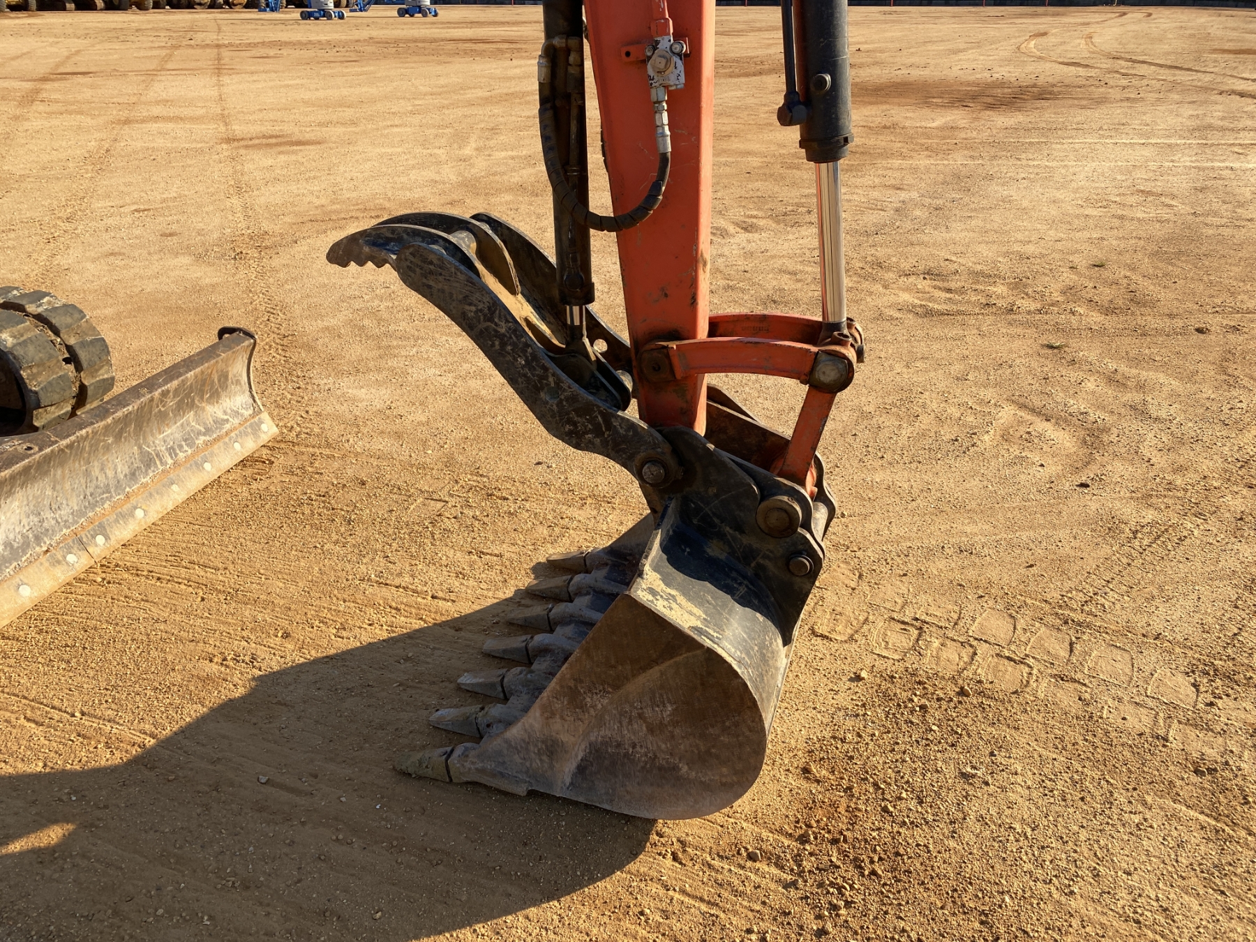 5' 3" stick, 36" bucket, coupler, hyd thumb, aux hyd, angle blade, canopy