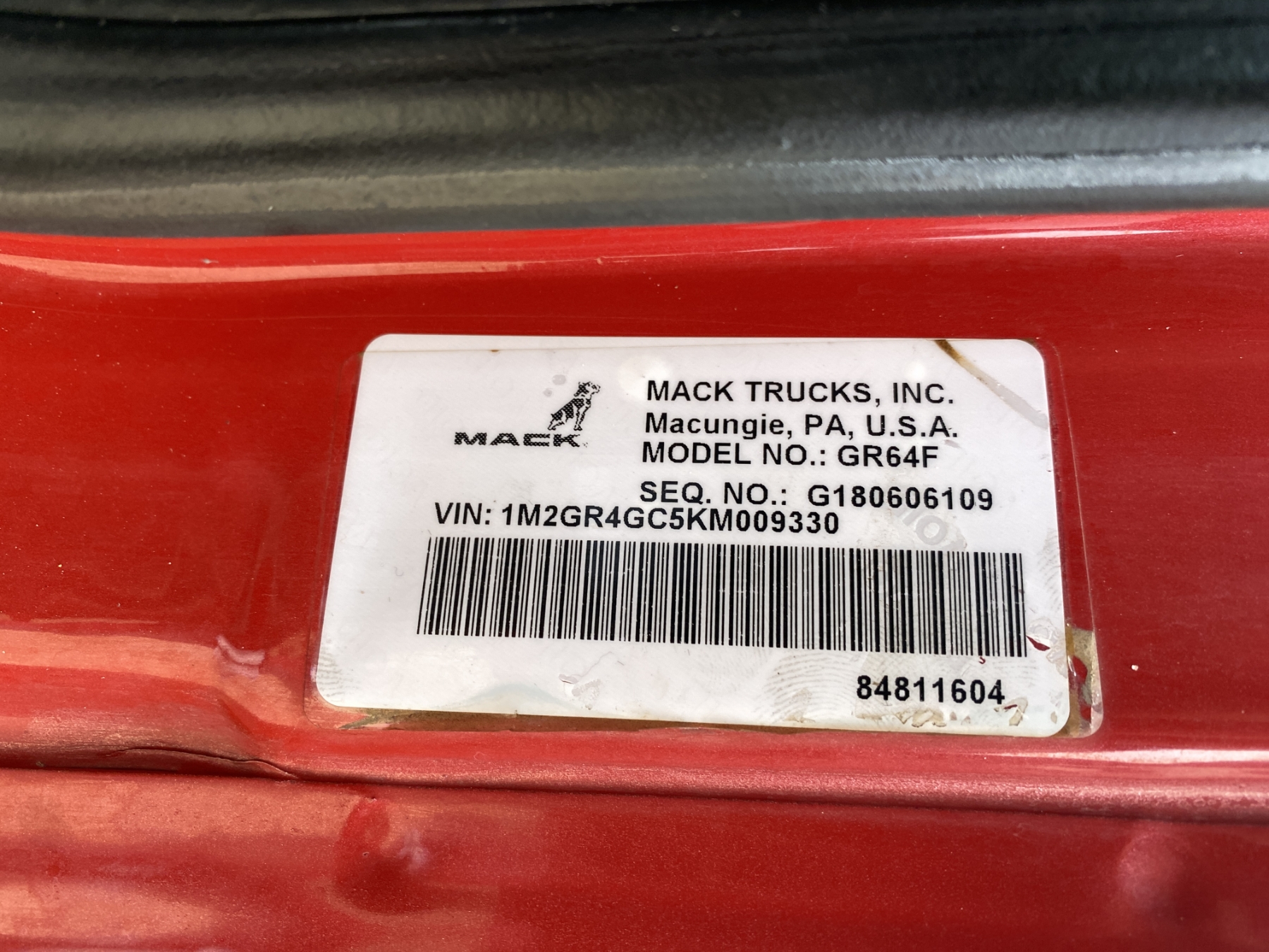 Vehicle ID Number: 1M2GR4GC5KM009330