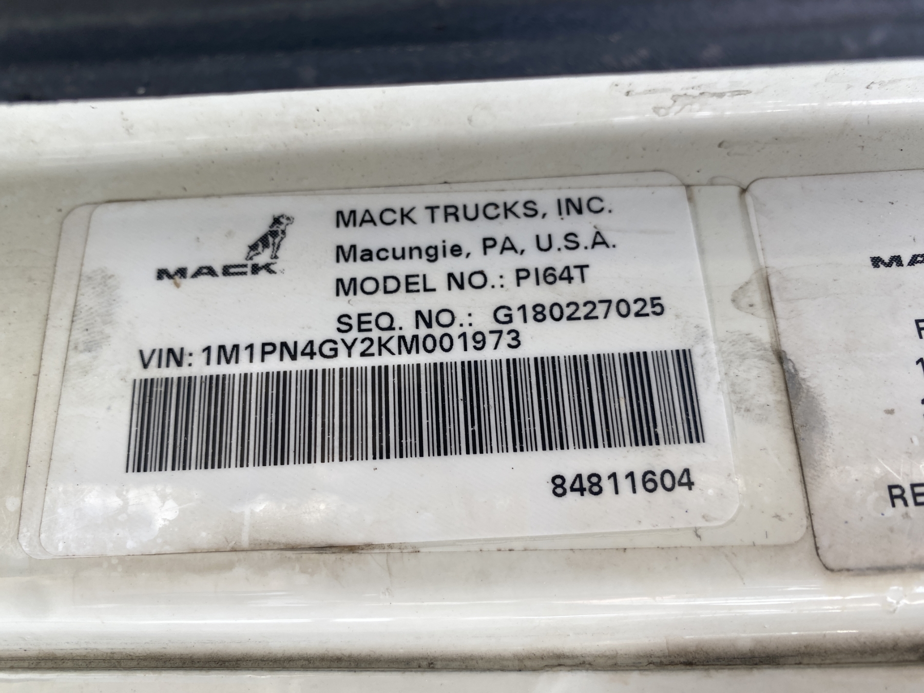 Vehicle ID Number: 1M1PN4GY2KM001973