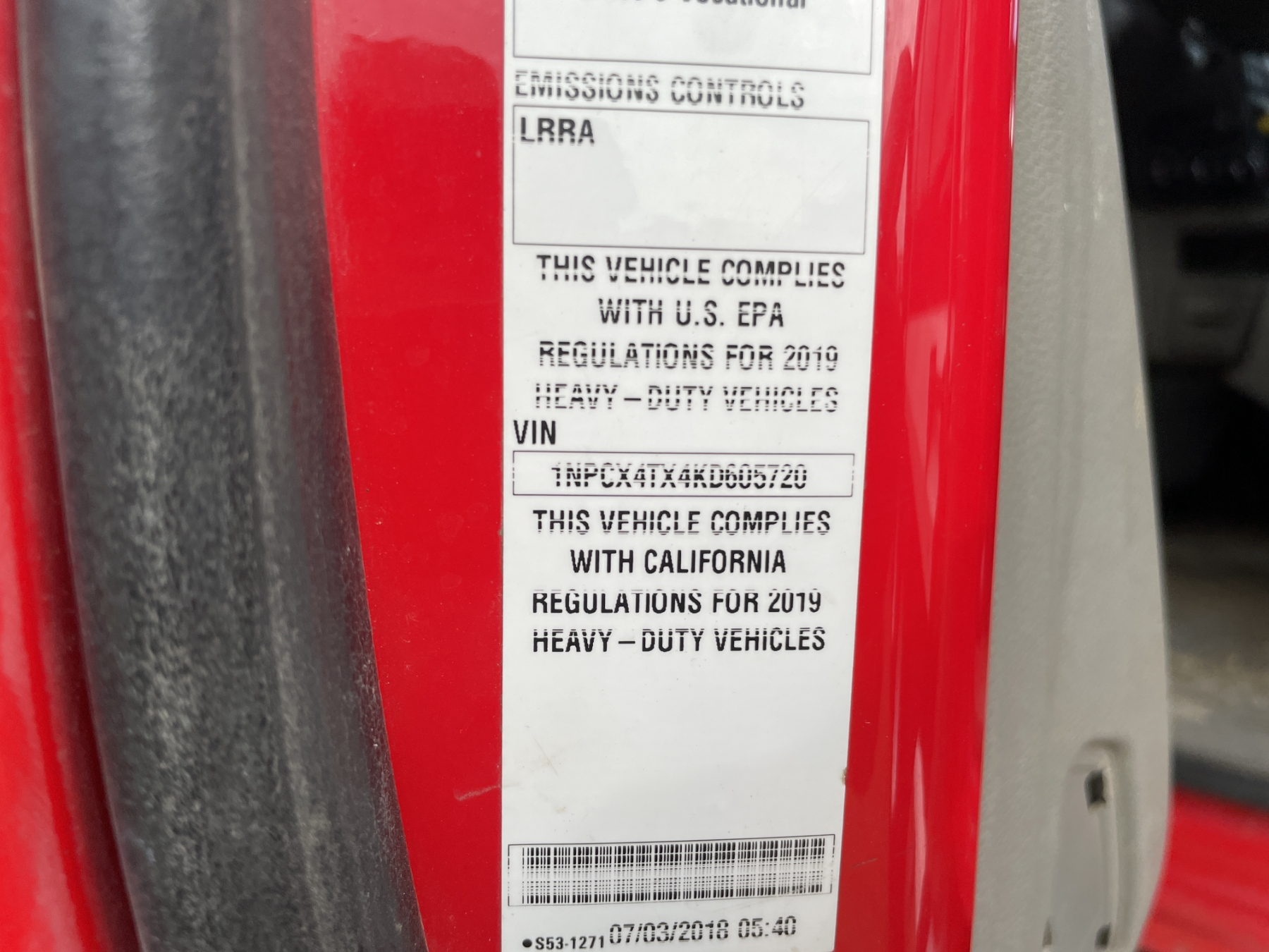 Vehicle ID Number: 1NPCX4TX4KD605720
