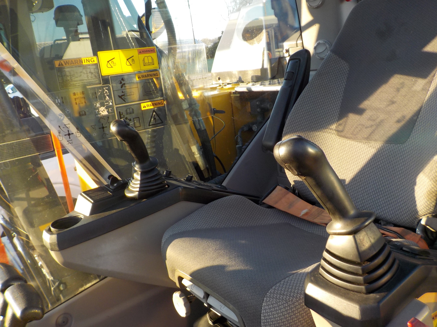 9' 9" stick, 30" bucket, coupler, hyd thumb, aux hyd, cab, A/C