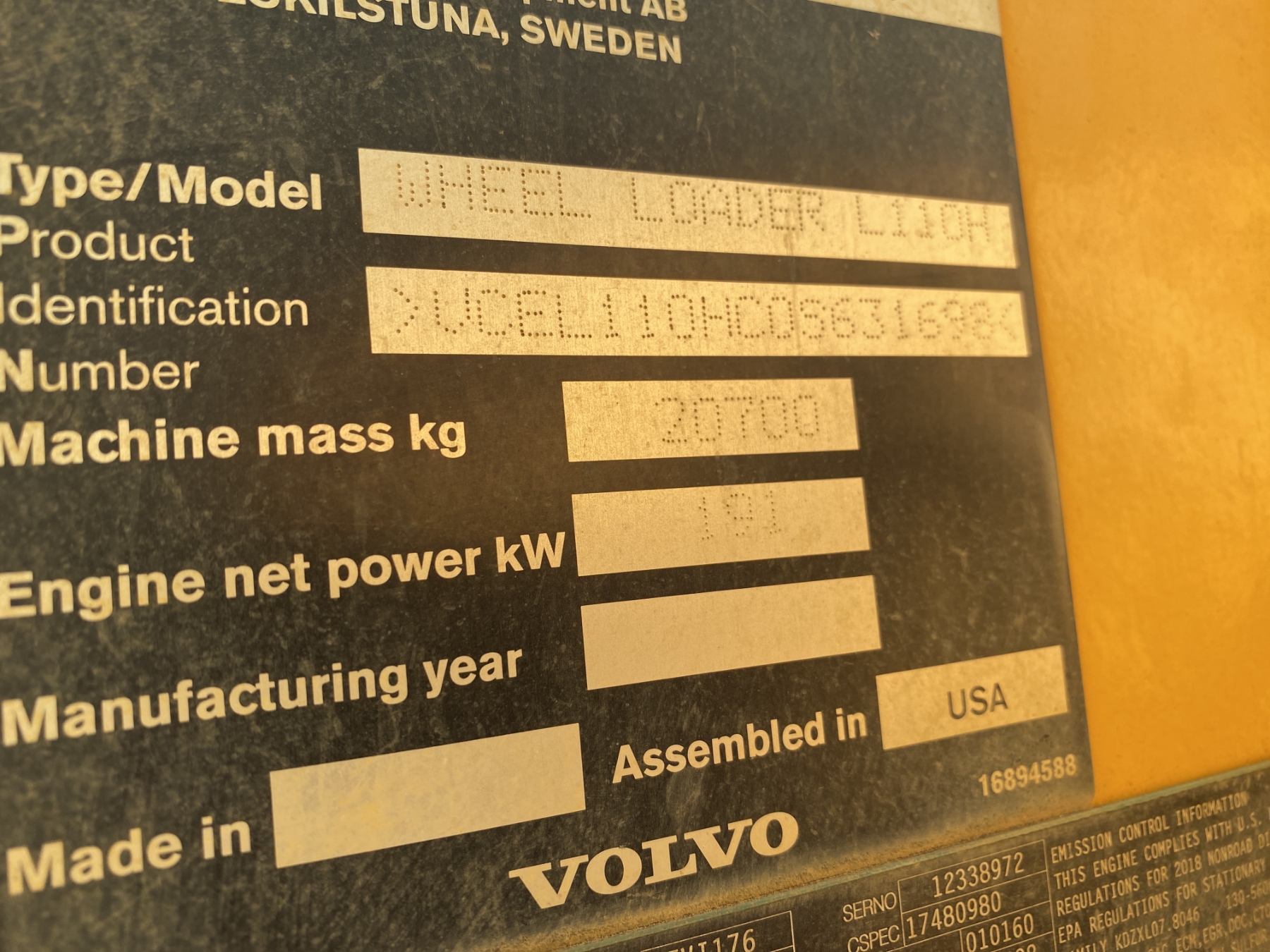 2019 VOLVO L110H Wheel Loader
