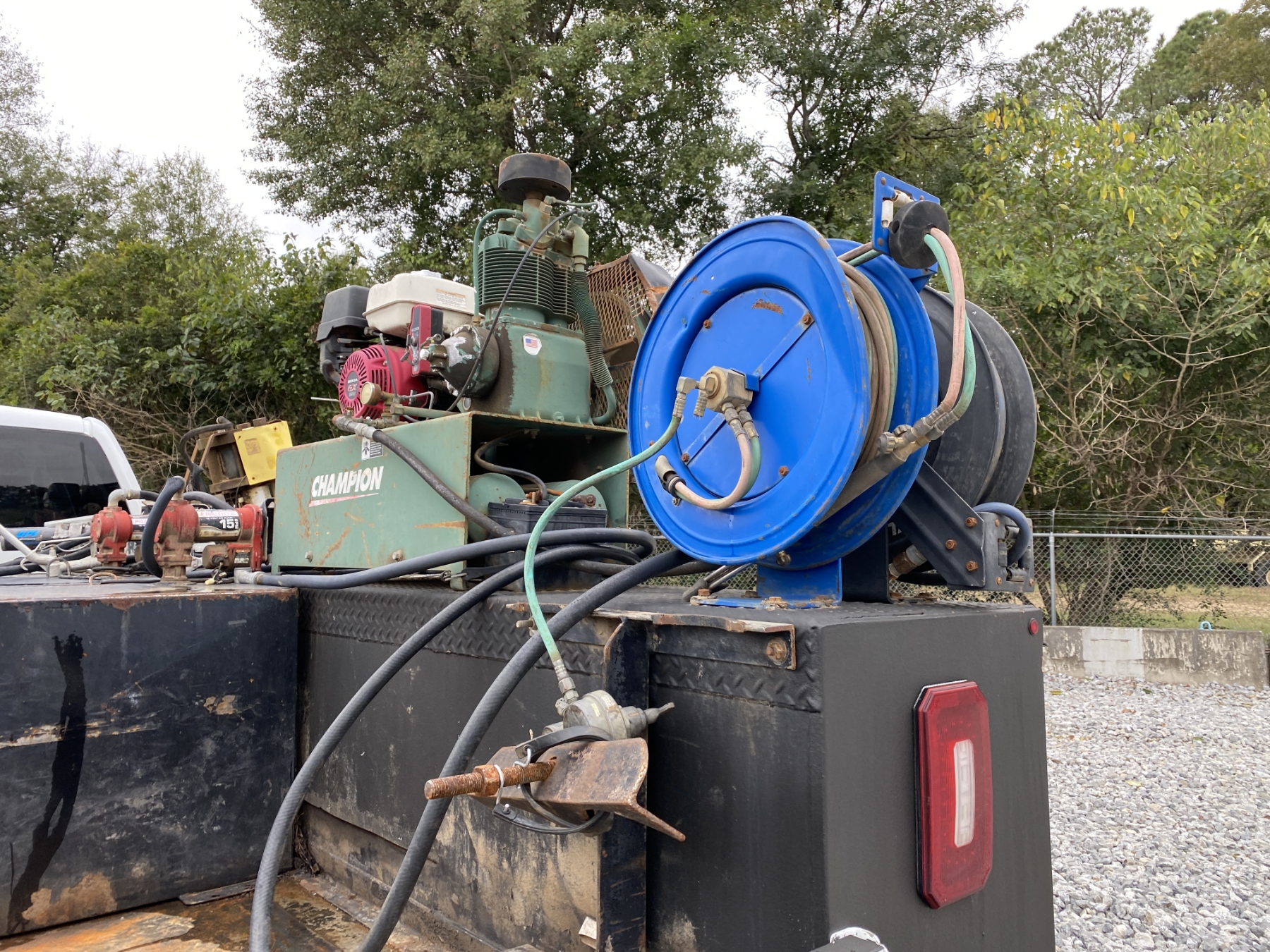 4x4, crew cab, Duramax diesel, Allison A/T, Knapheide service body, (3) fuel tanks, air compressor, hose reel