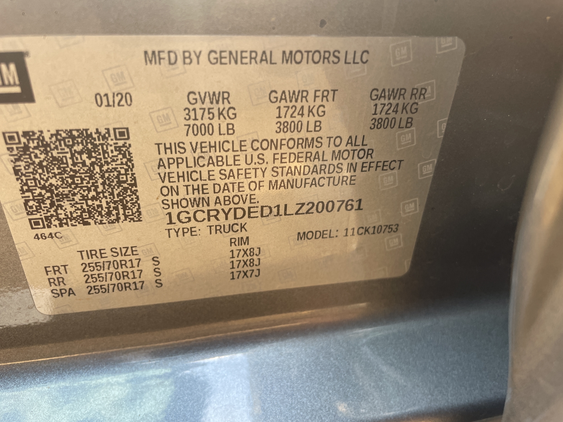 Vehicle ID Number: 1GCRYDED1LZ200761