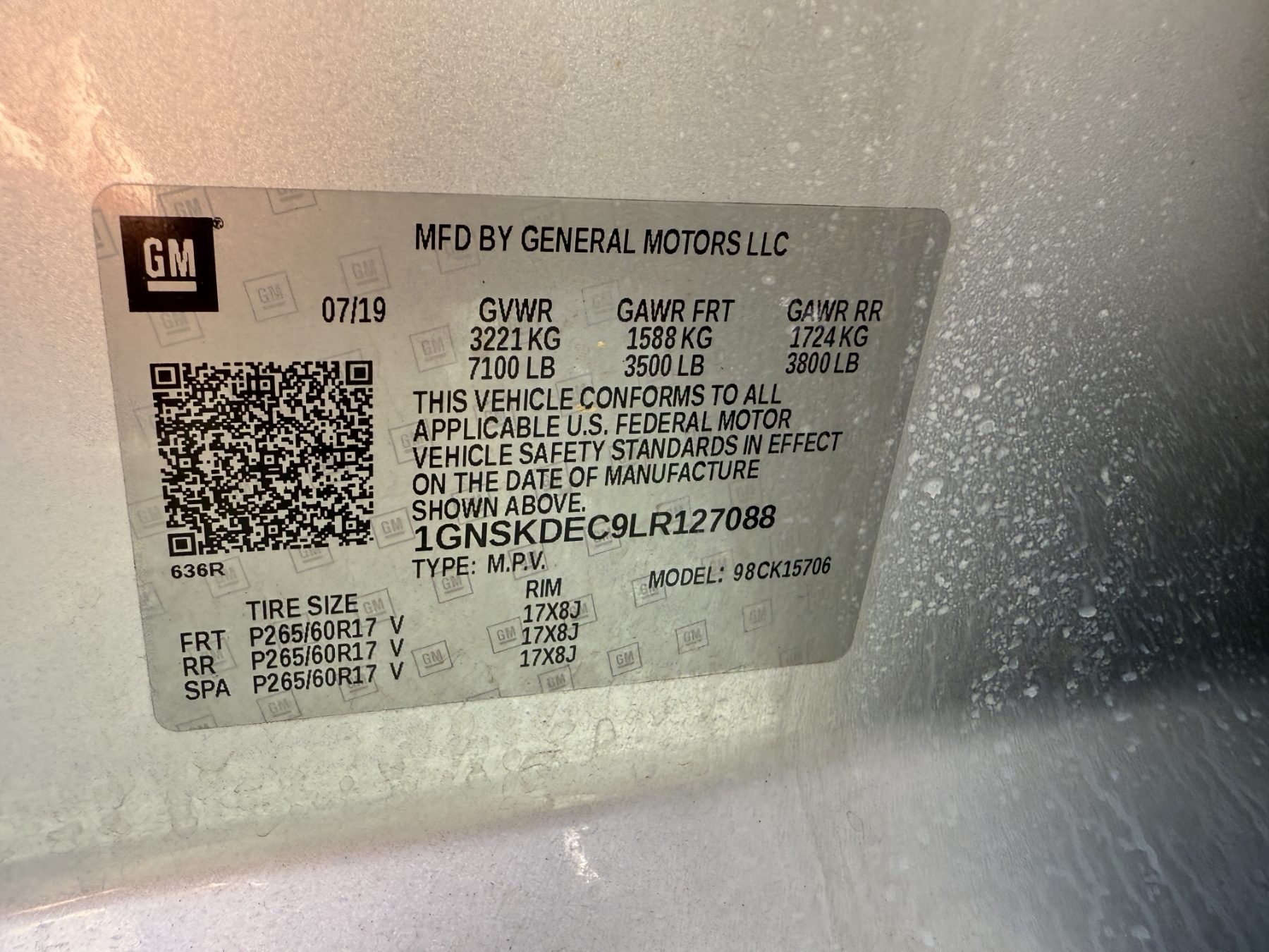 Vehicle ID Number: 1GNSKDEC9LR127088