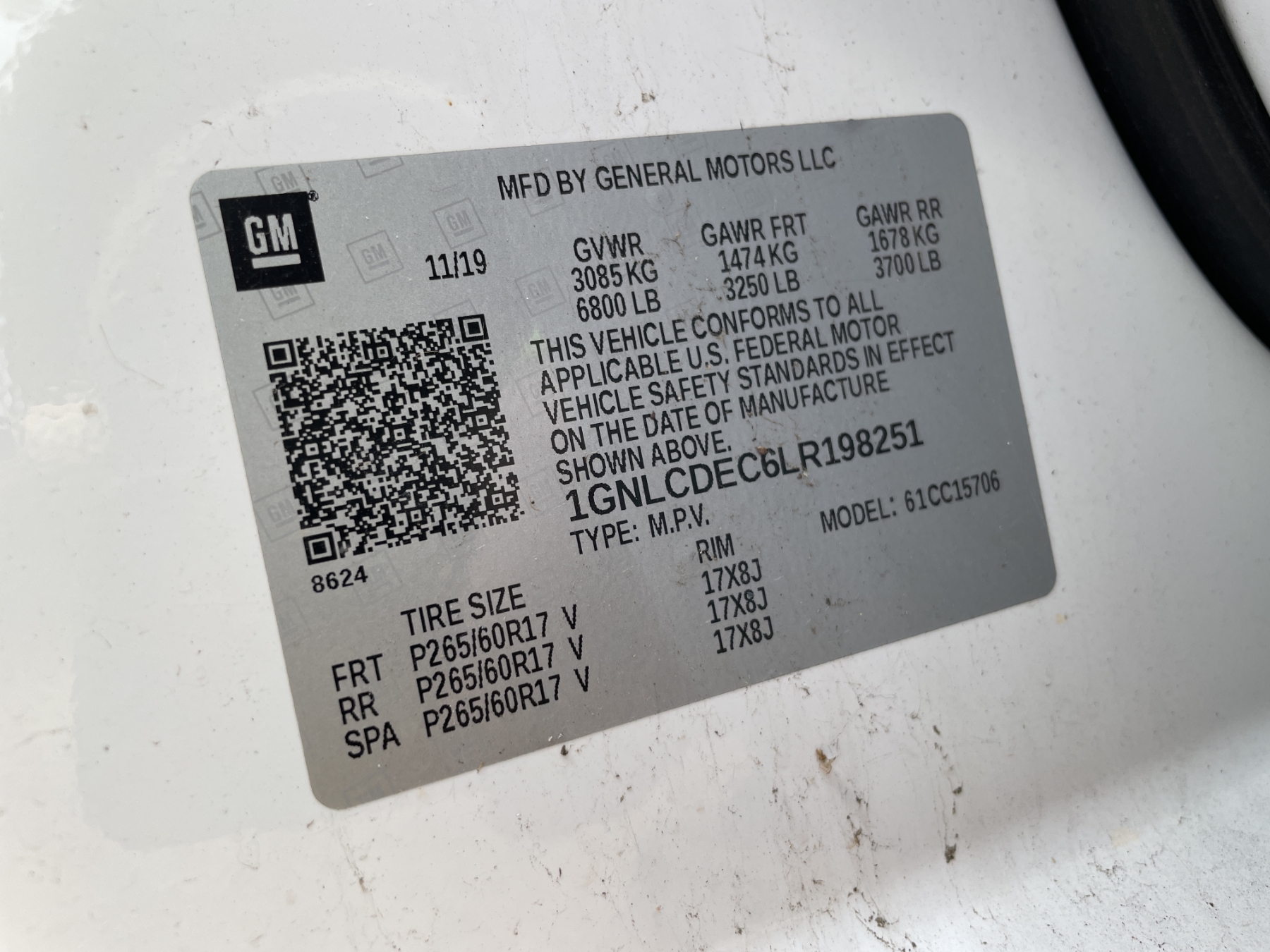 Vehicle ID Number: 1GNLCDEC6LR198251