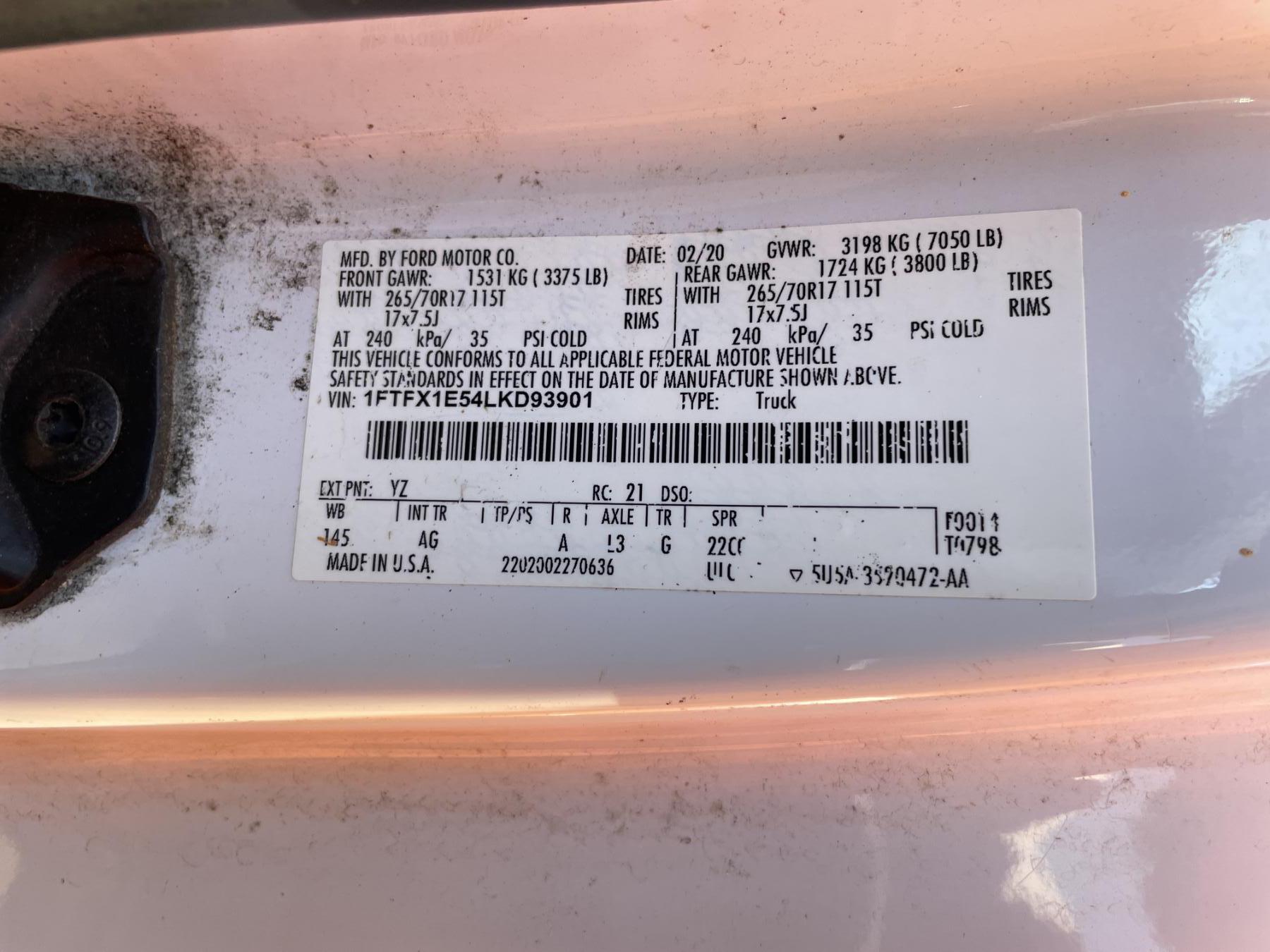 Vehicle ID Number: 1FTFX1E54LKD93901