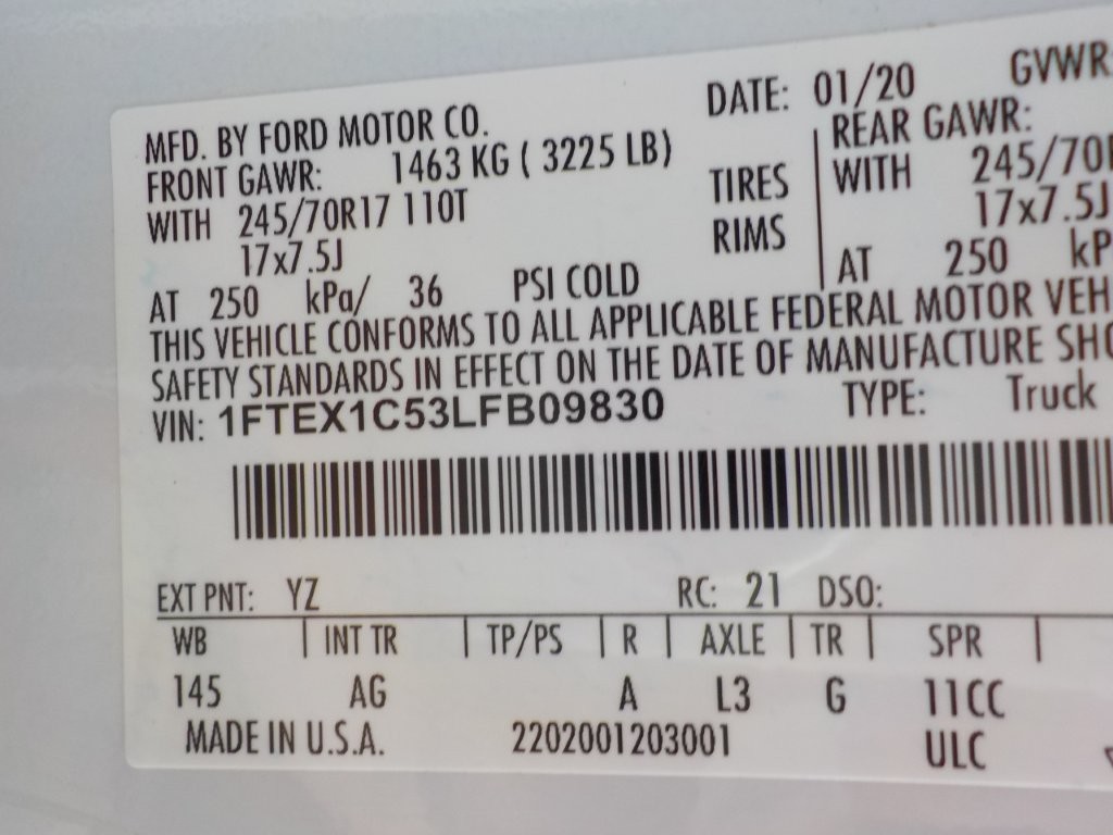 Vehicle ID Number: 1FTEX1C53LFB09830