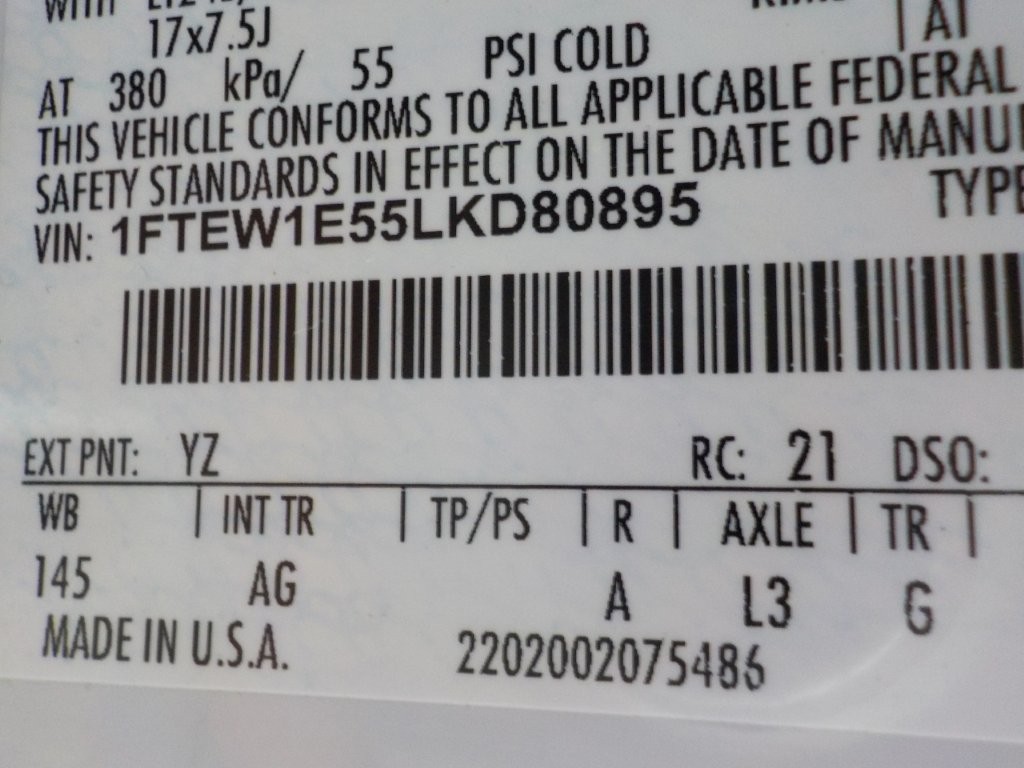 Vehicle ID Number: 1FTEW1E55LKD80895