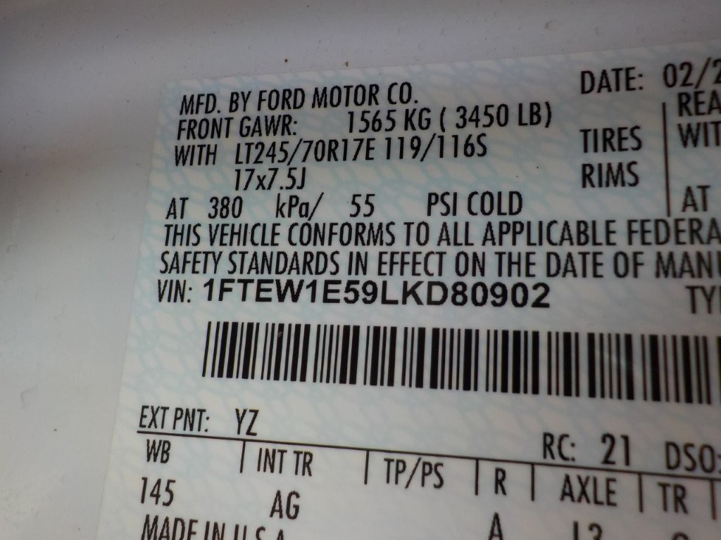 Vehicle ID Number: 1FTEW1E59LKD80902