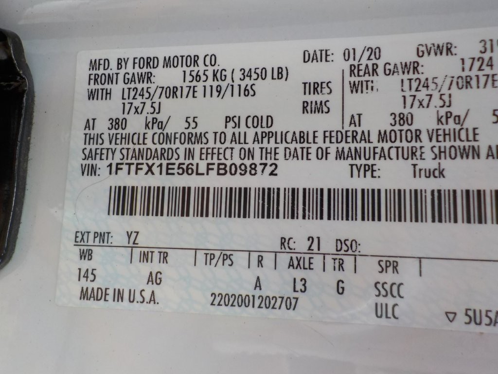 Vehicle ID Number: 1FTFX1E56LFB09872