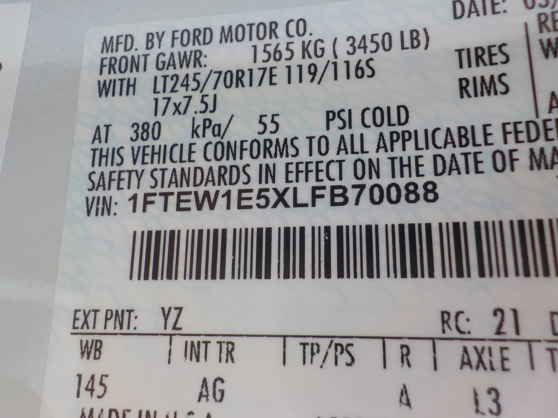 Vehicle ID Number: 1FTEW1E5XLFB70088
