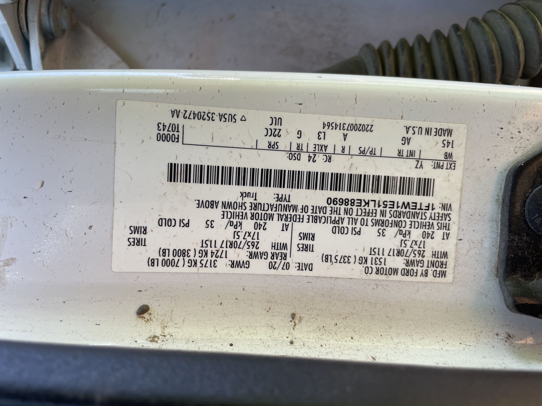 Vehicle ID Number: 1FTEW1E51LKE88690