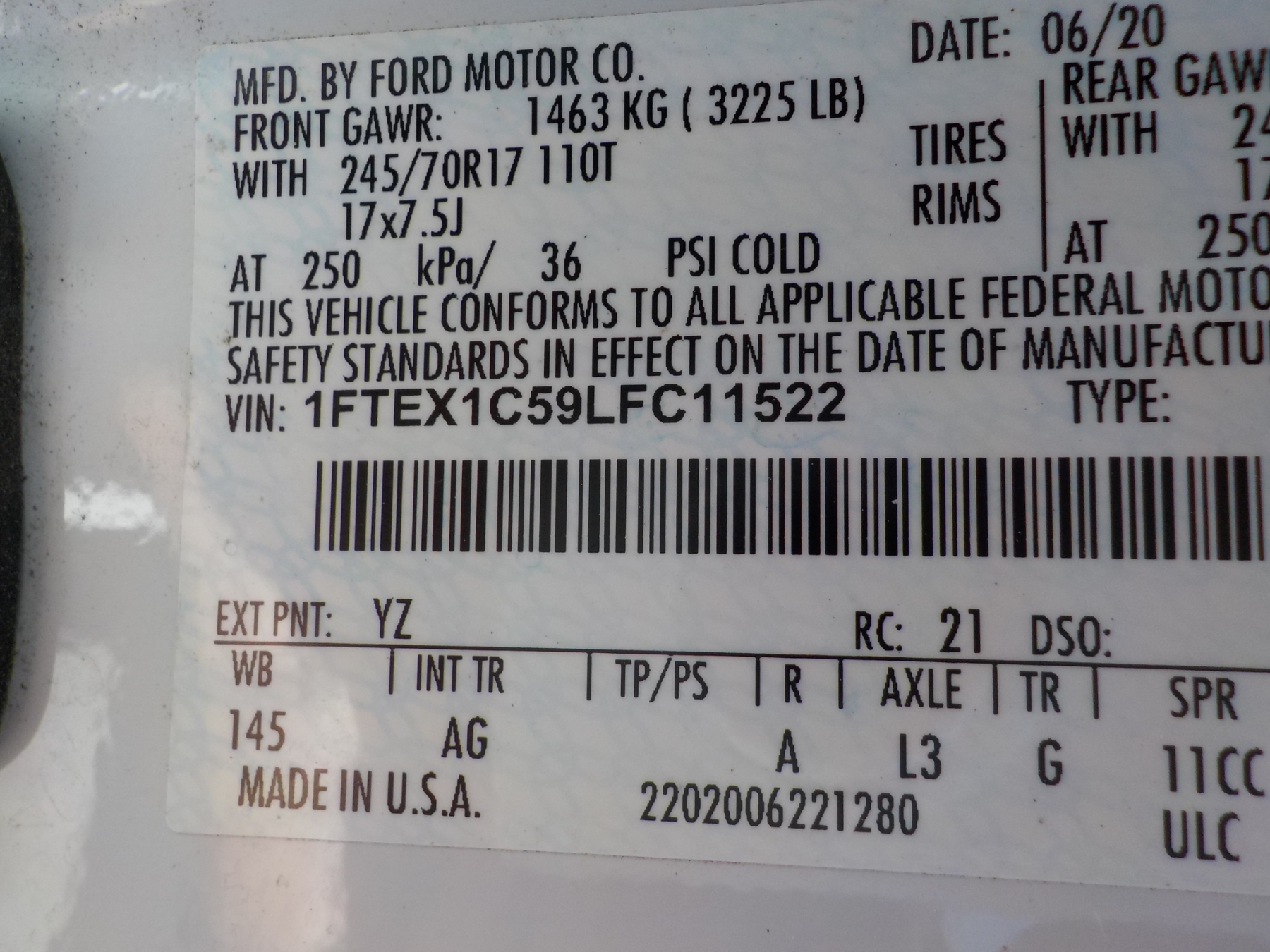 Vehicle ID Number: 1FTEX1C59LFC11522