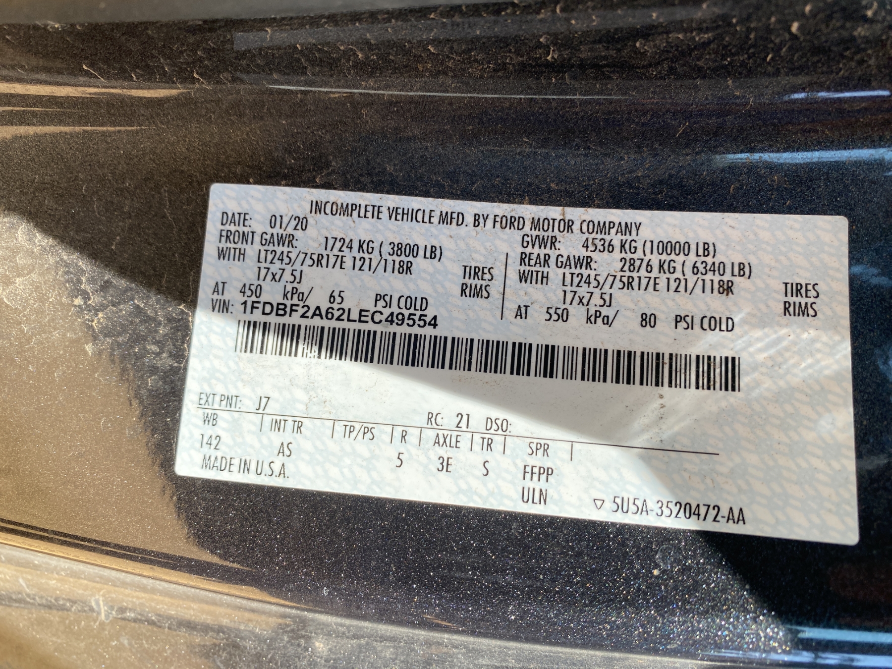 Vehicle ID Number: 1FDBF2A62LEC49554