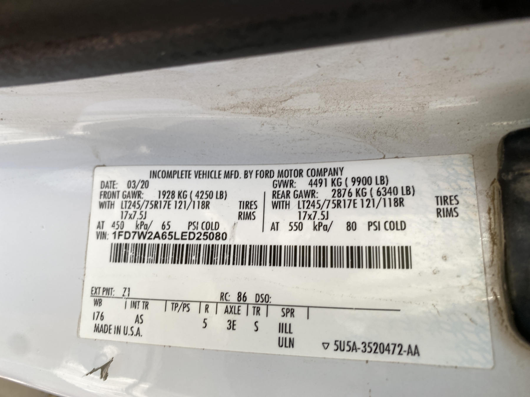 Vehicle ID Number: 1FD7W2A65LED25080