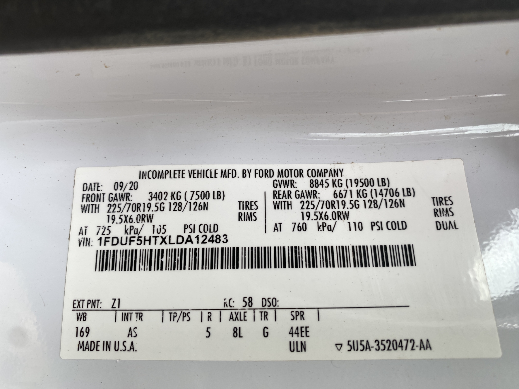 Vehicle ID Number: 1FDUF5HTXLDA12483