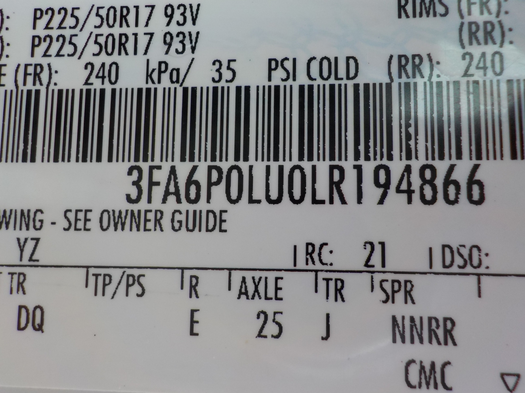 Vehicle ID Number: 3FA6P0LU0LR194866