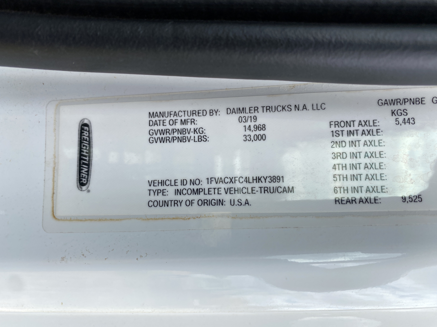 Vehicle ID Number: 1FVACXFC4LHKY3891