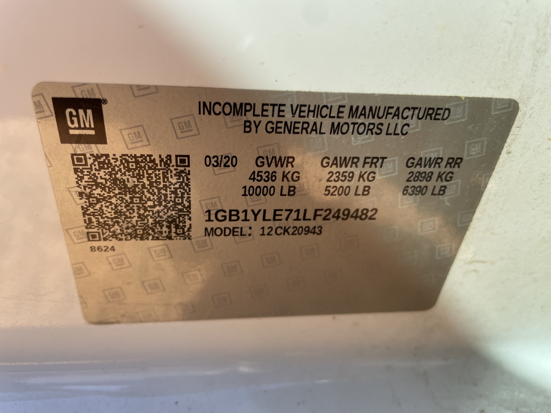 Vehicle ID Number: 1GB1YLE71LF249482
