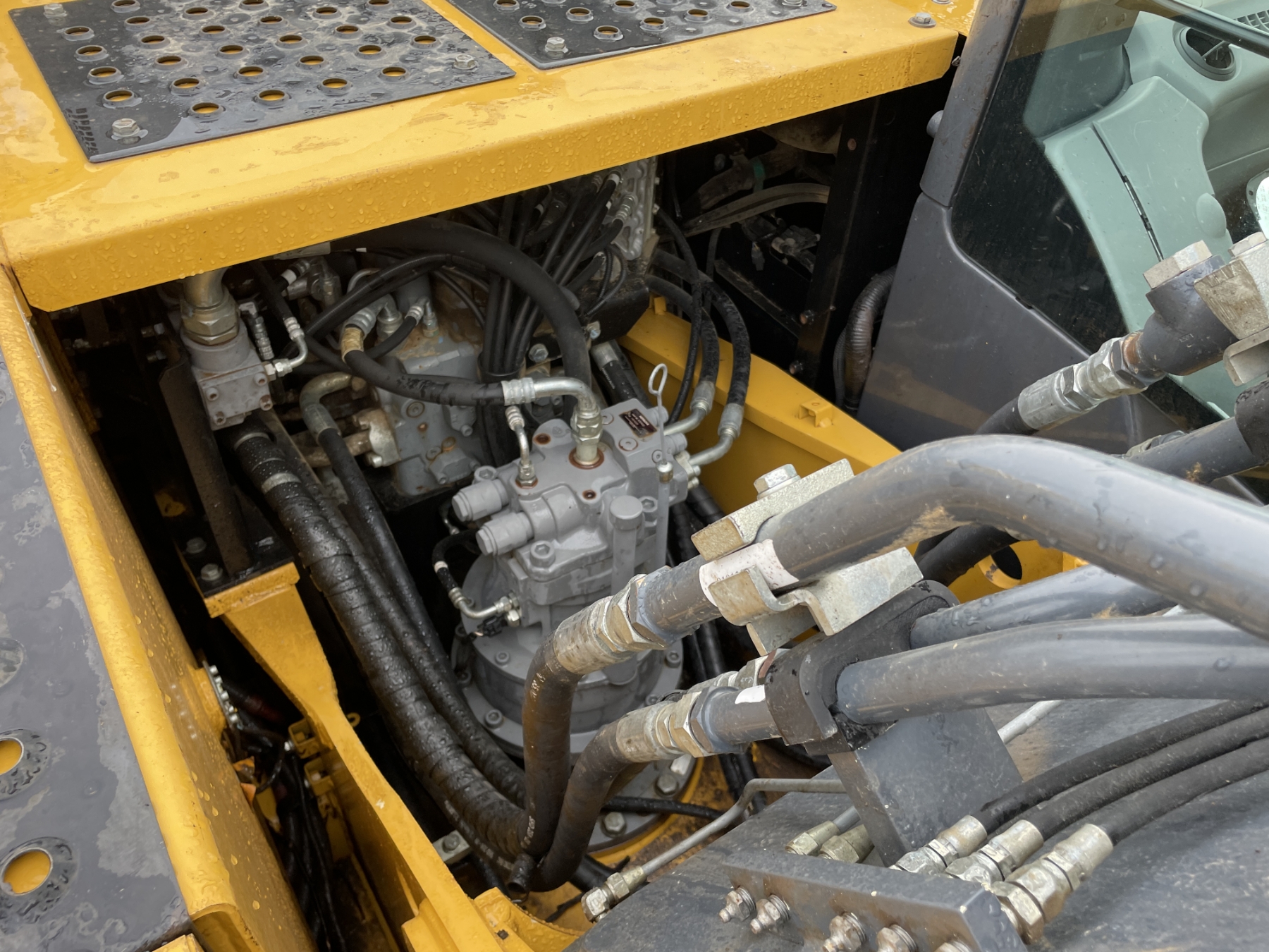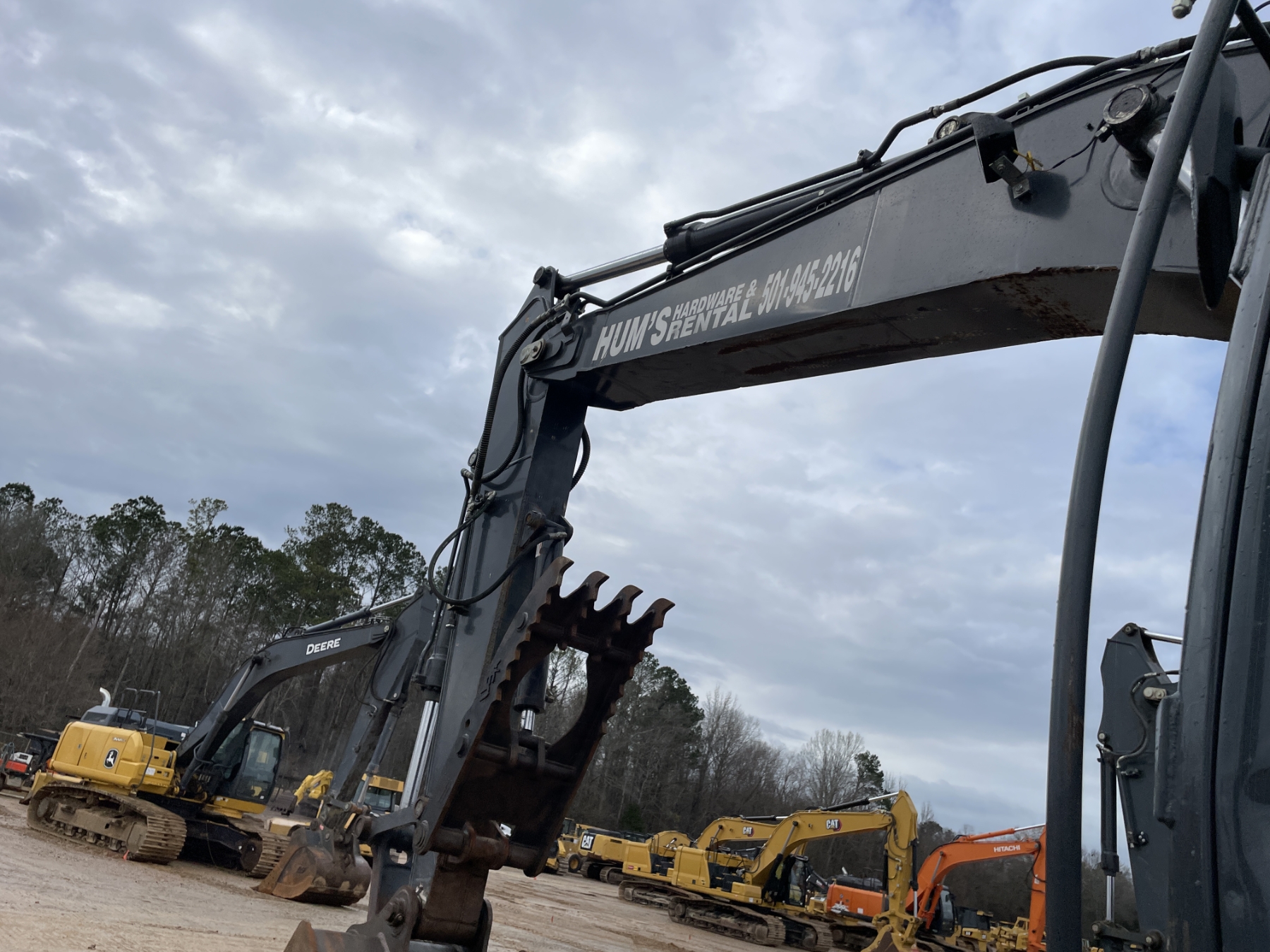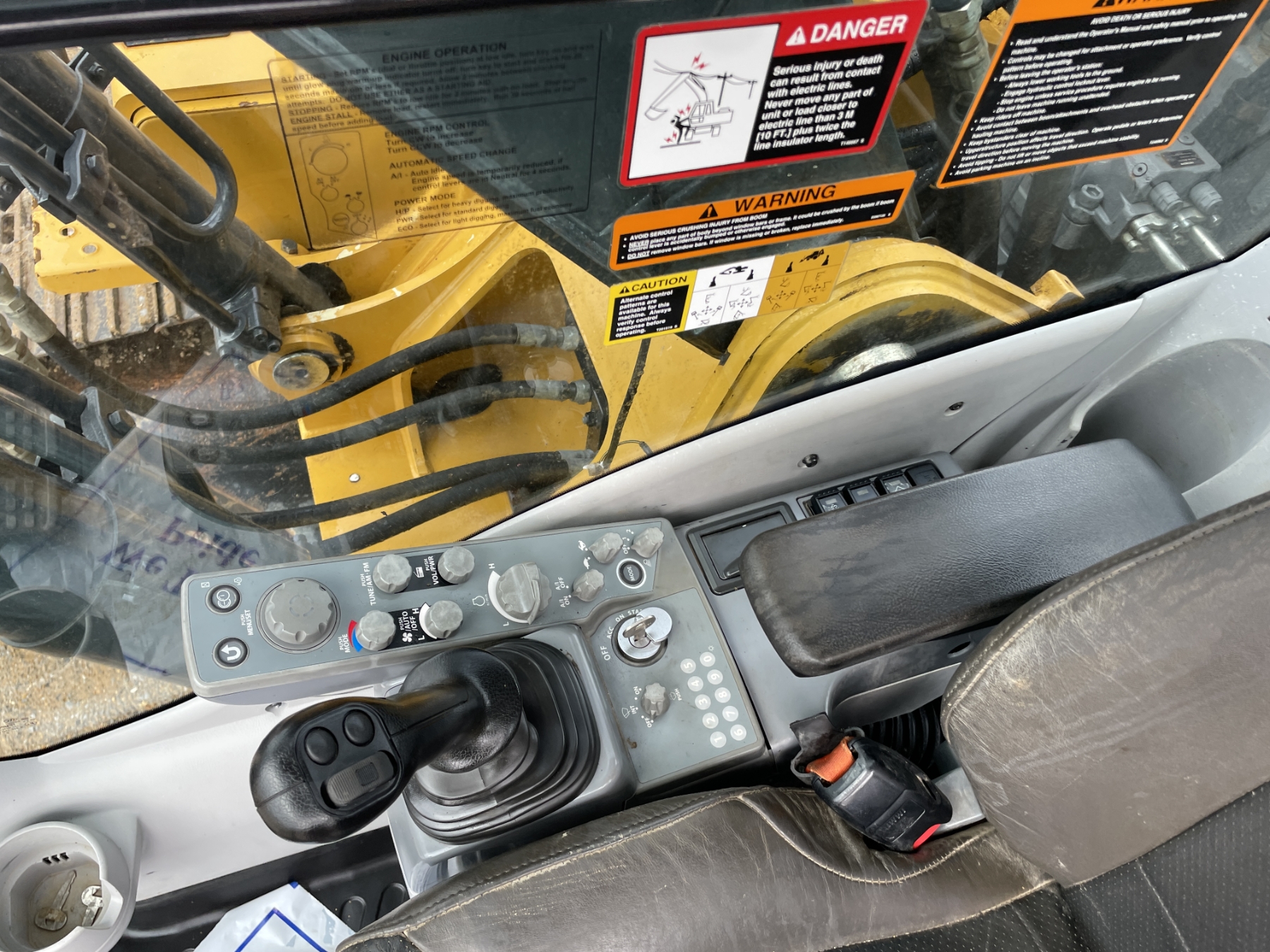 9' 6" stick, 48" bucket, hyd thumb, aux hyd, cab, A/C