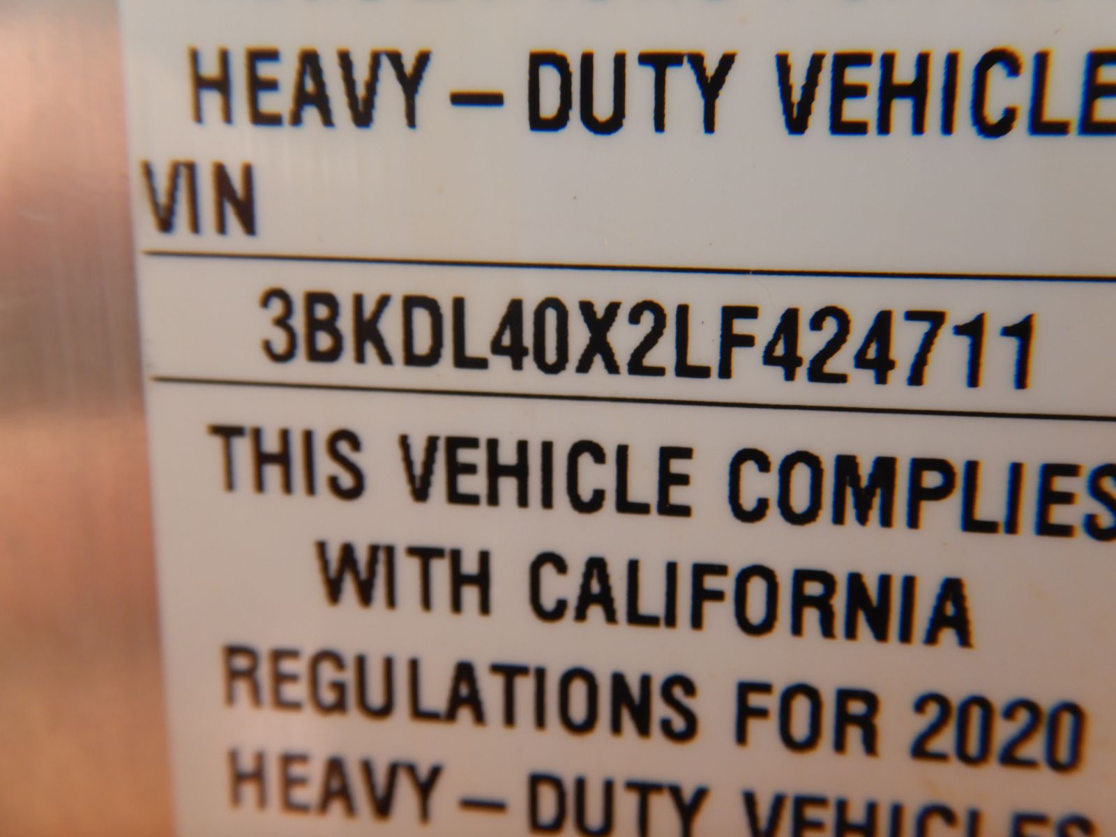 Vehicle ID Number: 3BKDL40X2LF424711