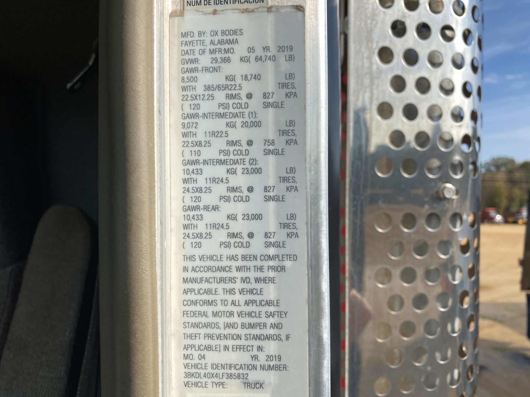 Vehicle ID Number: 3BKDL40X4LF385832