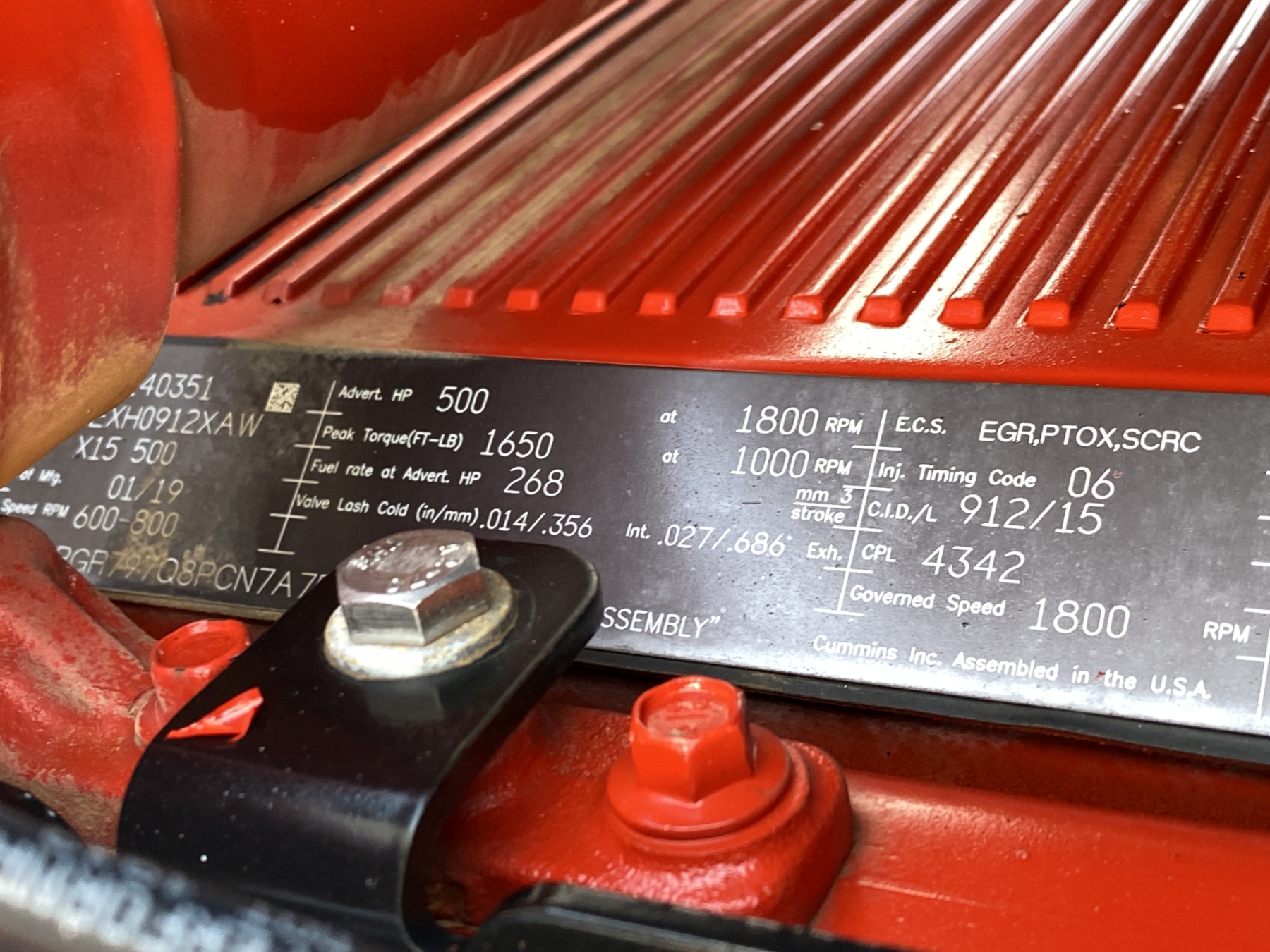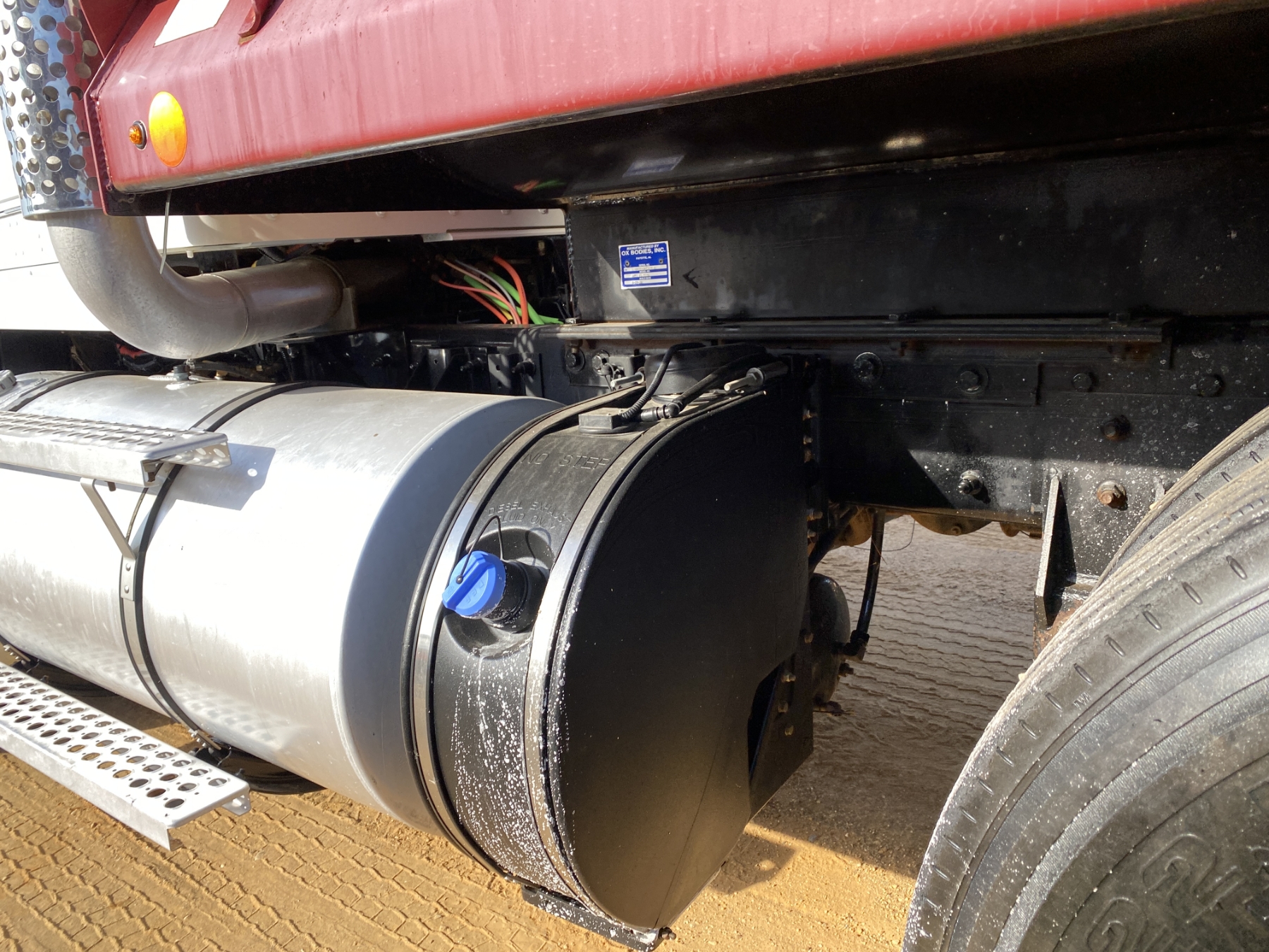 Tri Axle, ext. cab, 500 HP Cummins X15 engine, Allison 4500 RDS A/T, 46K rears, 18,740 lb. front, 16' Hard Ox body, high-lift gate, 11R24.5 rear tires, 385/65R22.5 tires