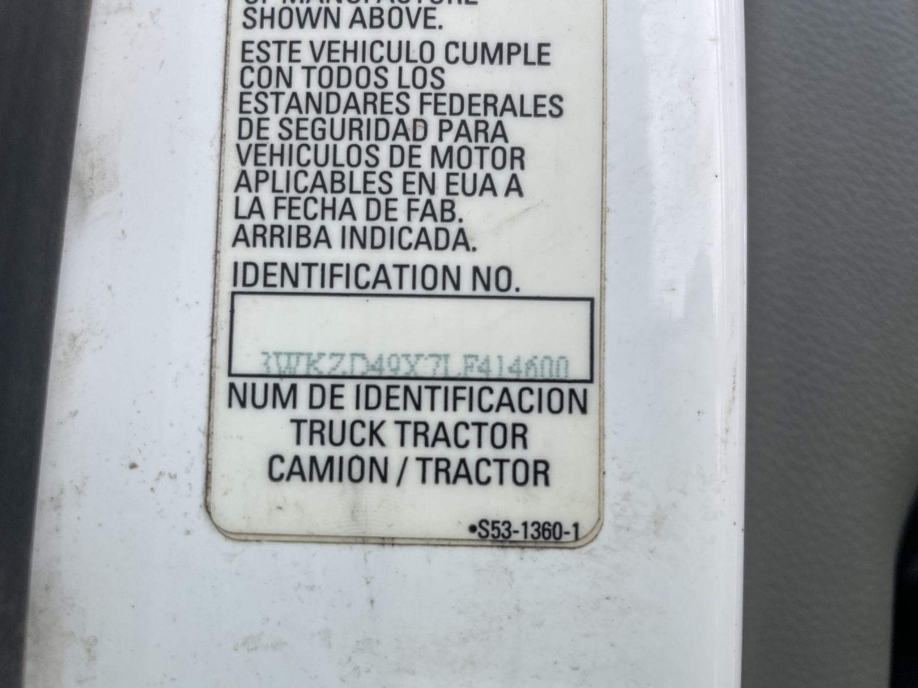 Vehicle ID Number: 3WKZD49X7LF414600
