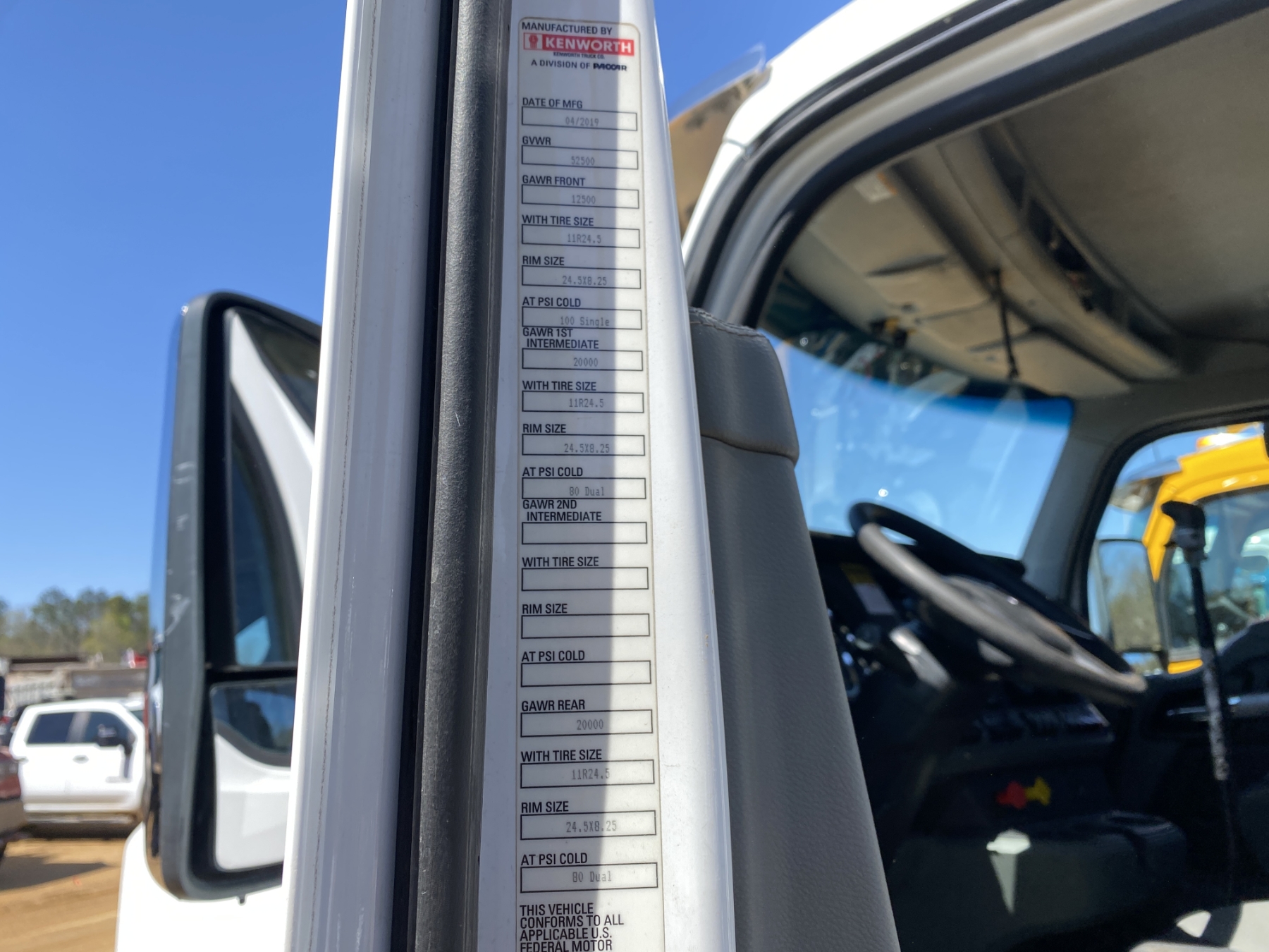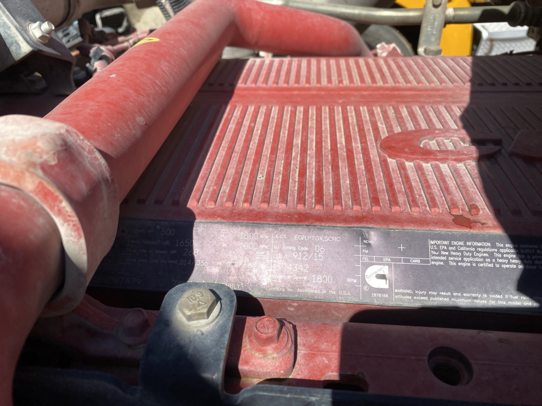 T/A, 500 HP Cummins X15 engine, Eaton 10 speed trans, 40K rears, air ride, 12,500 lb. front, 205" W/B, wet kit, 11R24.5 tires, all alum