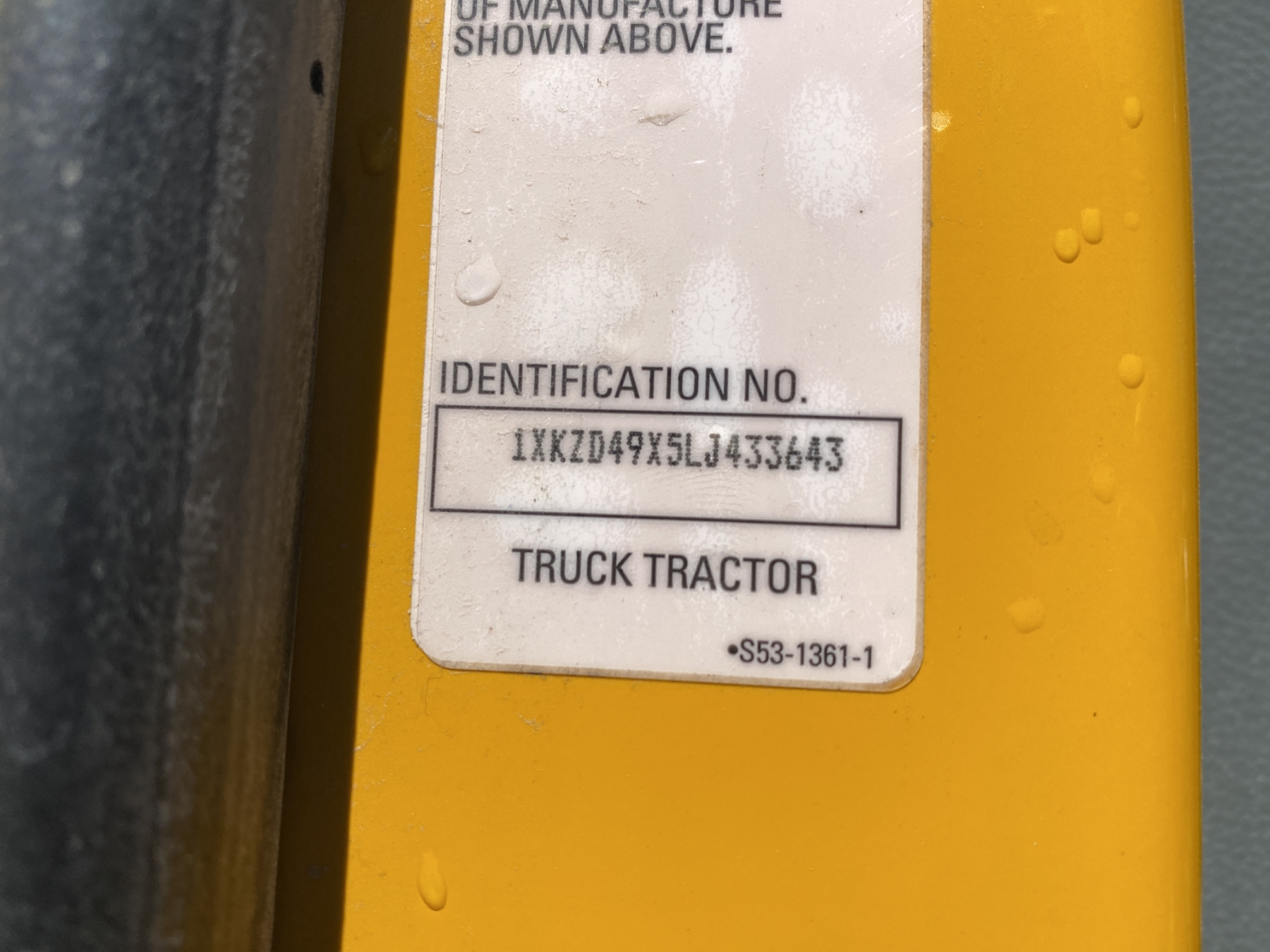 Vehicle ID Number: 1XKZD49X5LJ433643