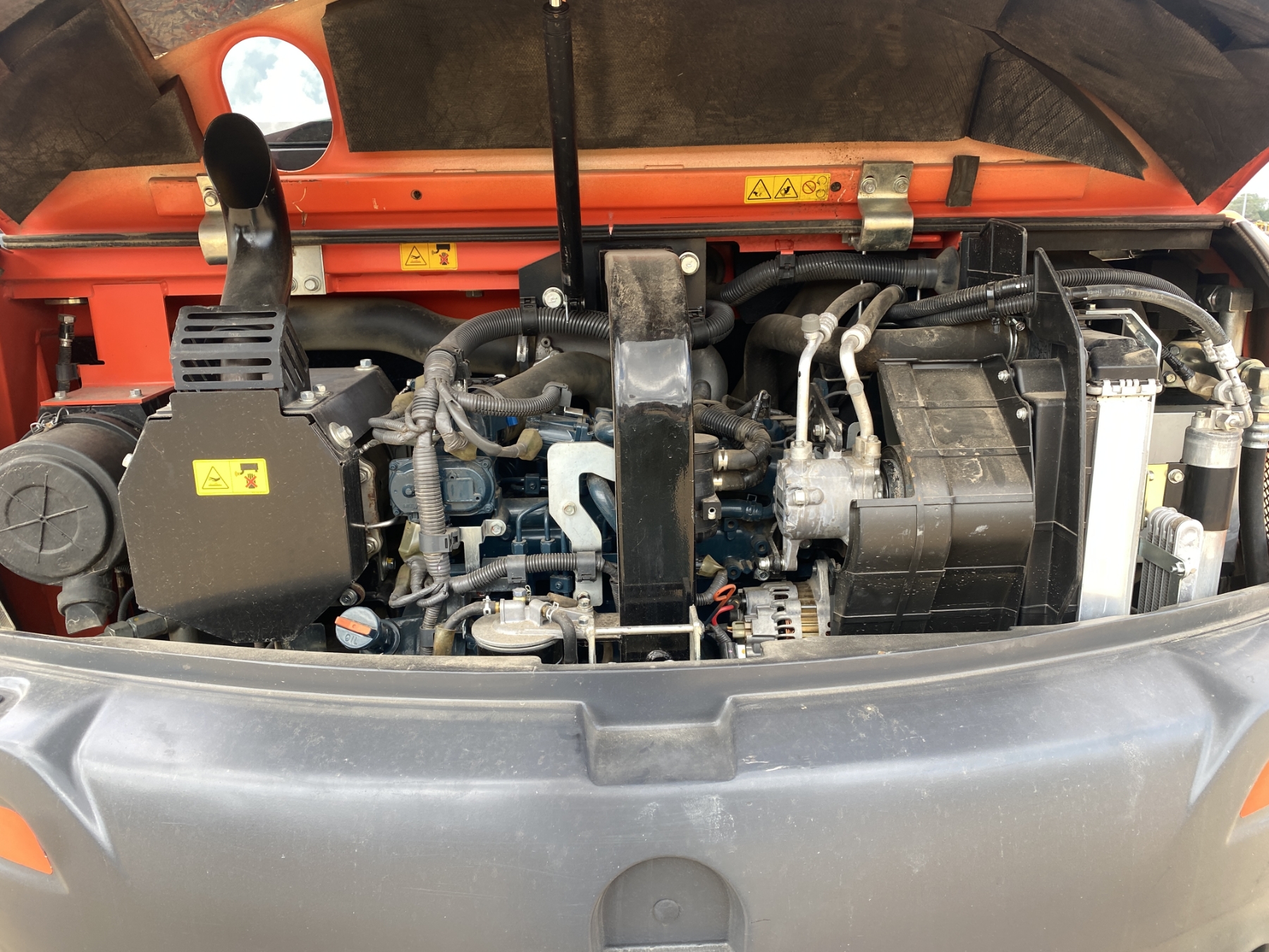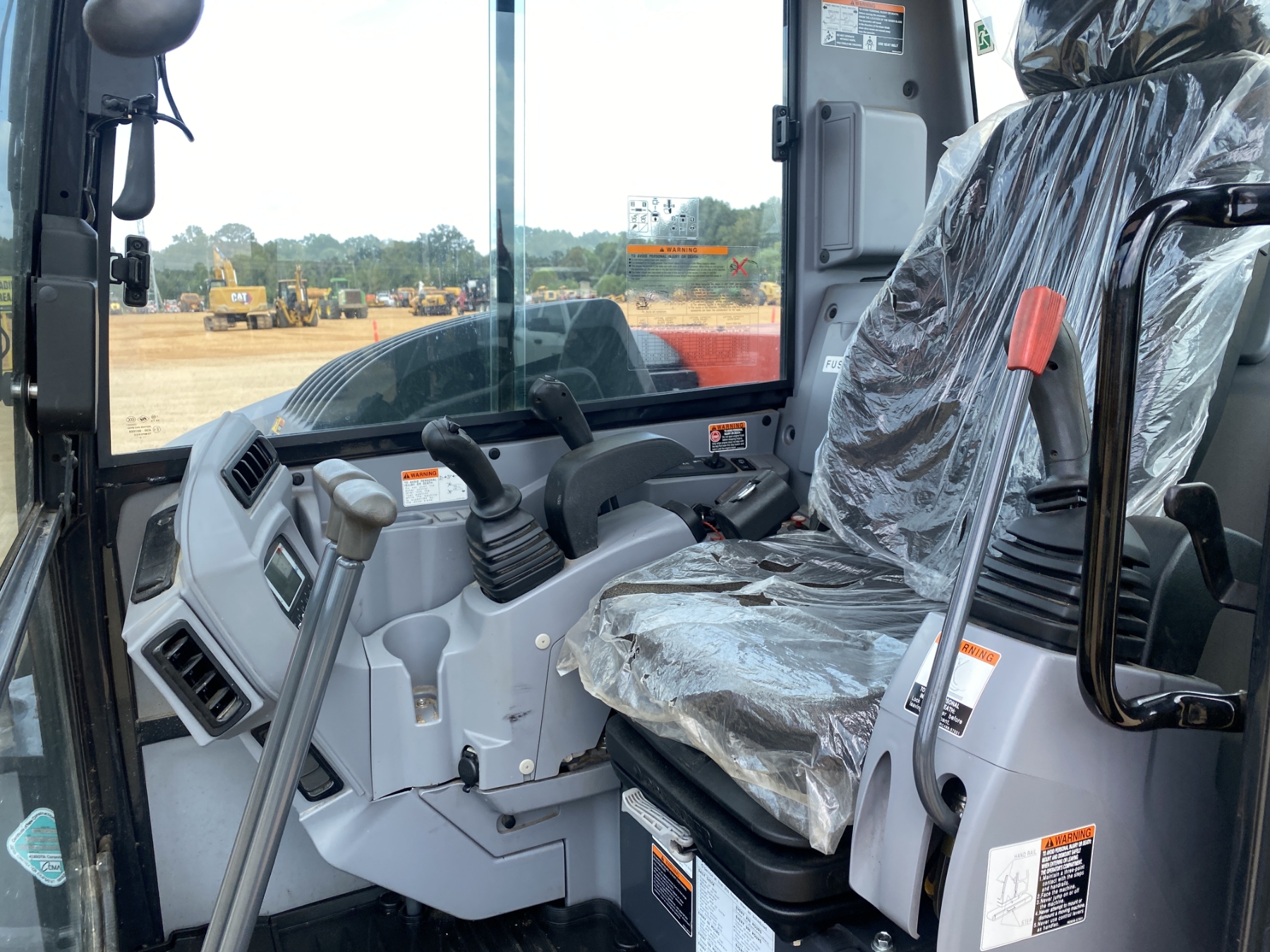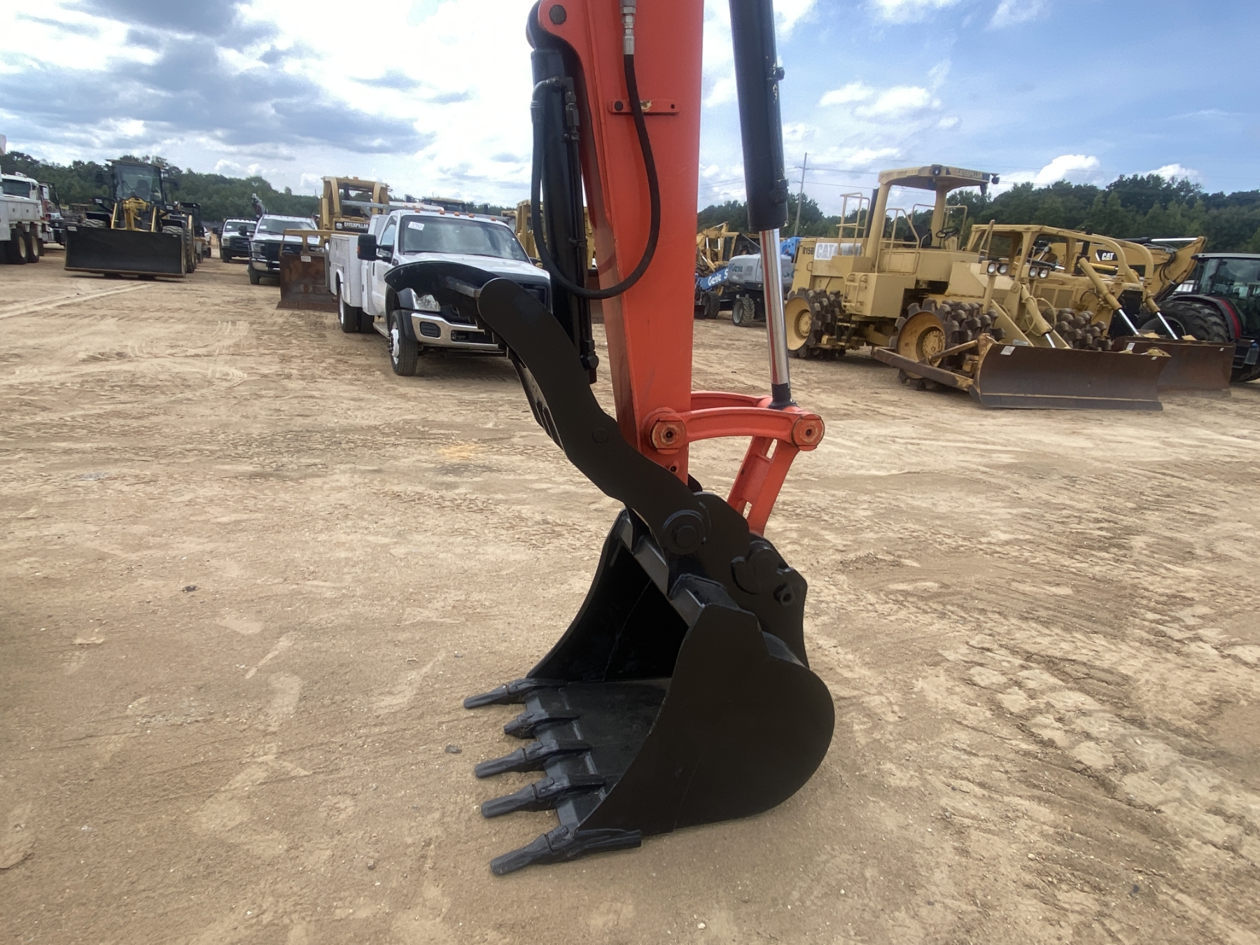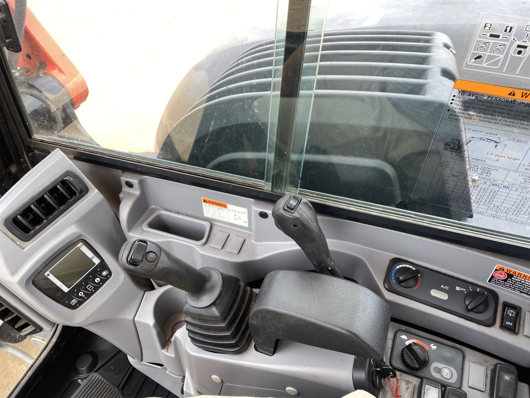 6' 10" stick, 30" bucket, coupler, hyd thumb, aux hyd, blade, rubber tracks, cab, A/C