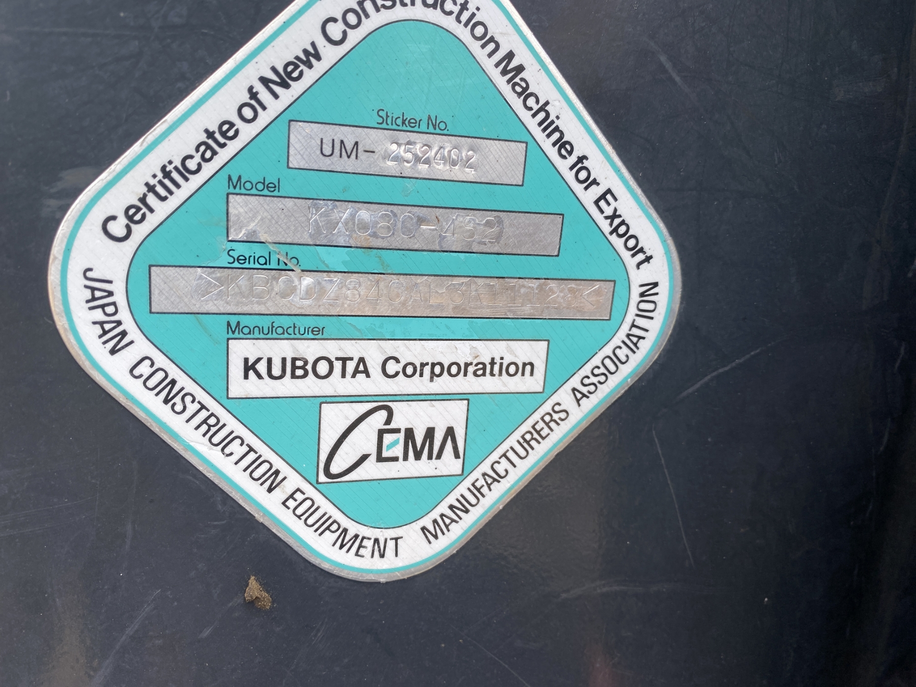 2020 KUBOTA KX080-4S2 Excavator