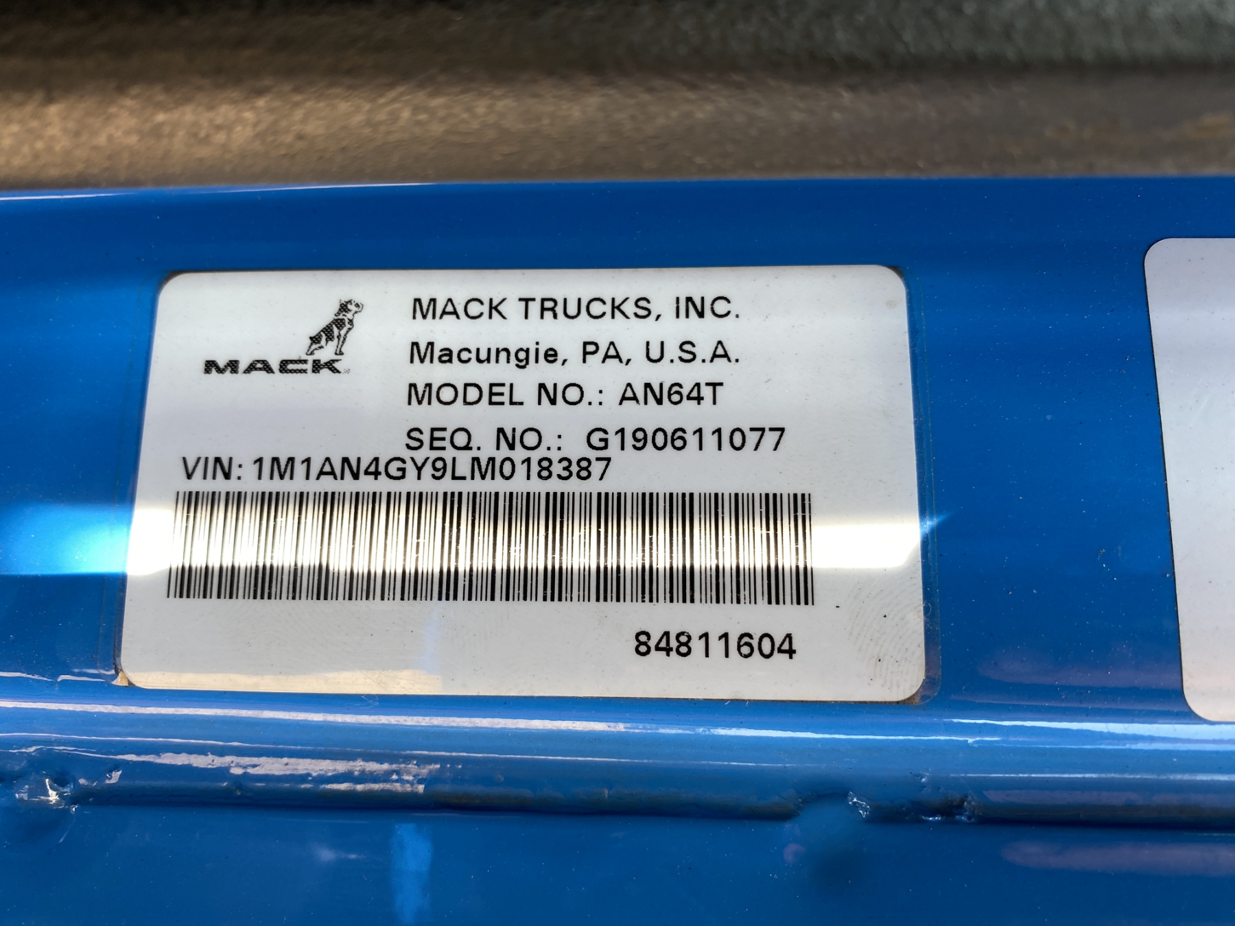 Vehicle ID Number: 1M1AN4GY9LM018387
