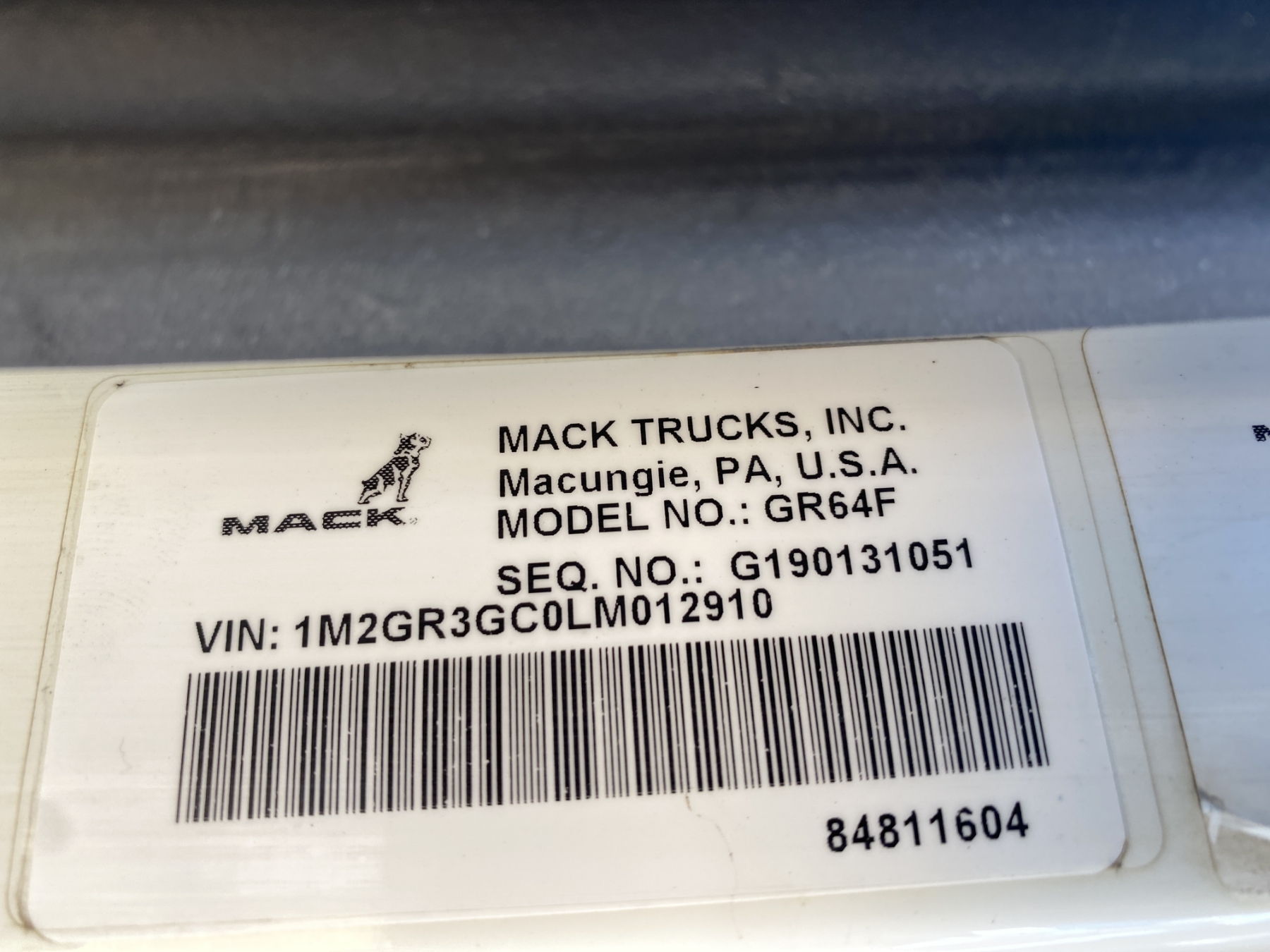 Vehicle ID Number: 1M2GR3GC0LM012910