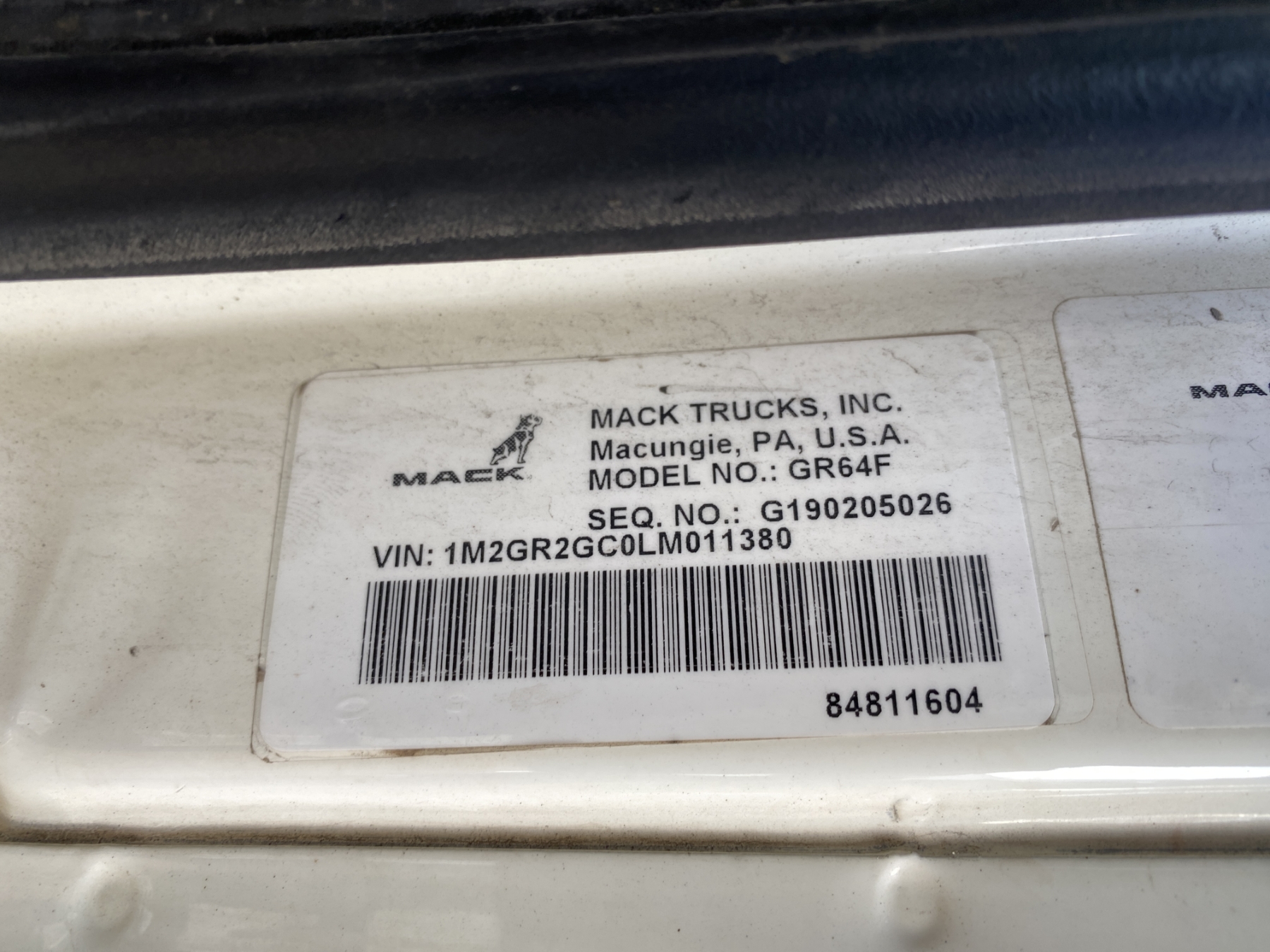 Vehicle ID Number: 1M2GR2GC0LM011380