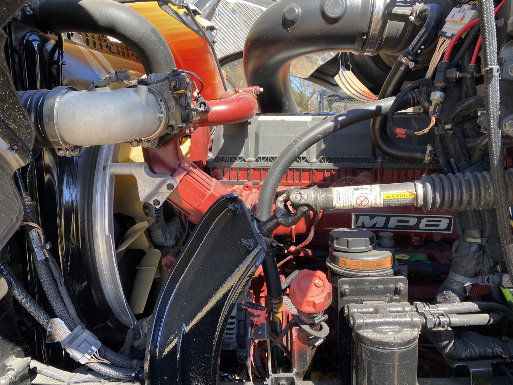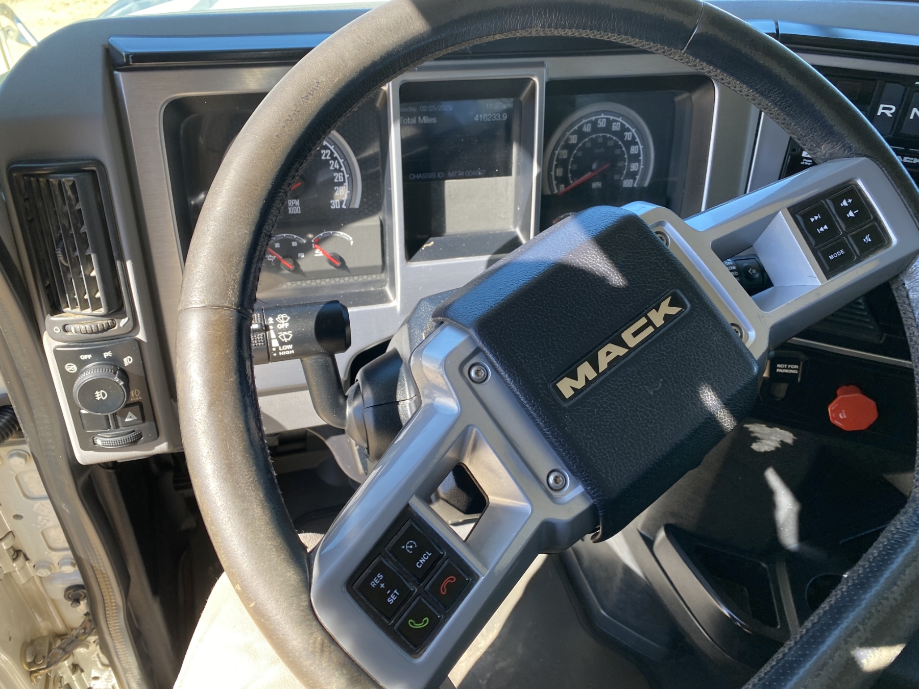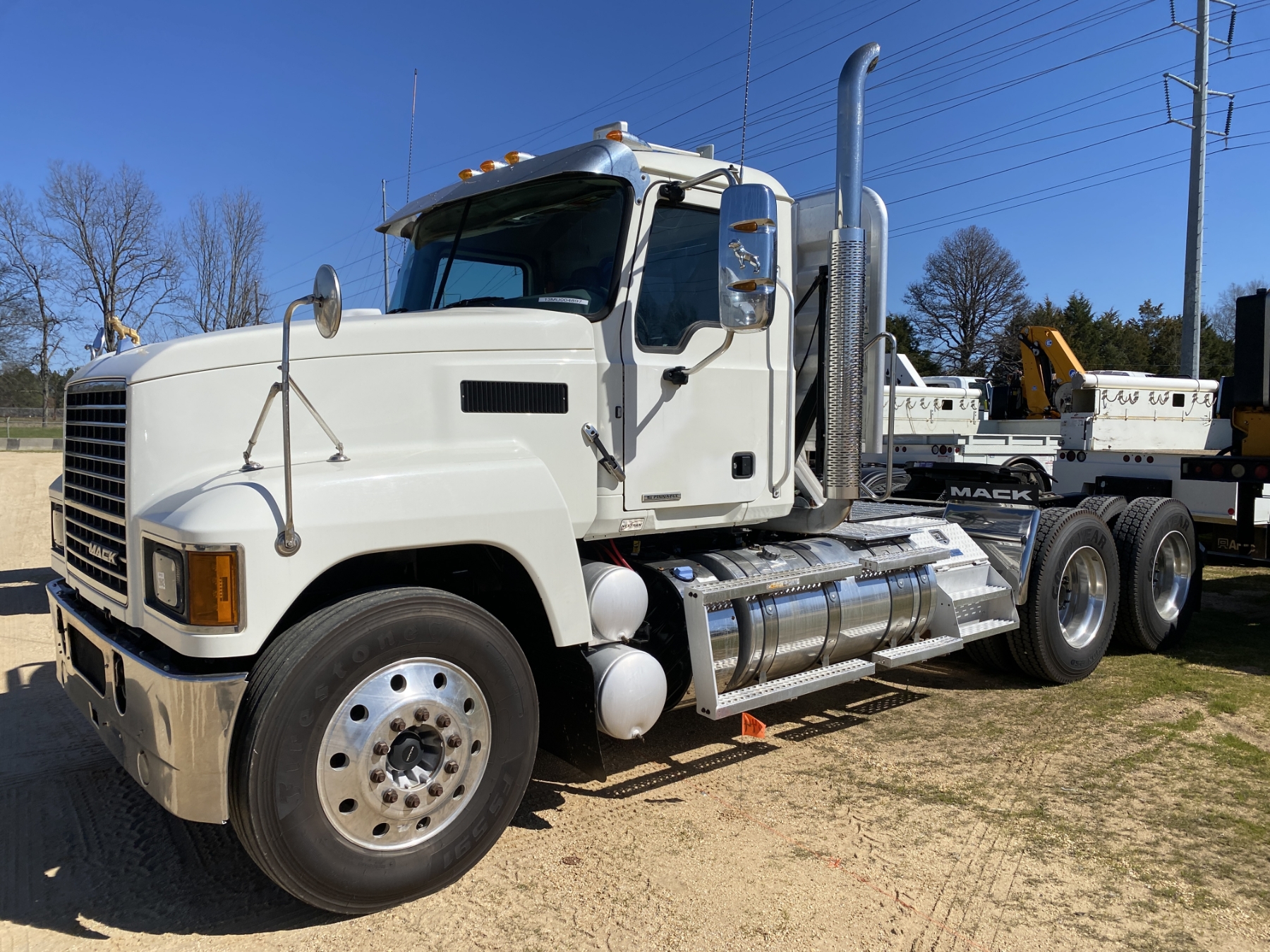 T/A, Mack MP8 engine, Mack mDrive auto shift trans, 40K rears, air ride, 12K front, 210" W/B, alum headache rack, 11R24.5 tires, all alum
