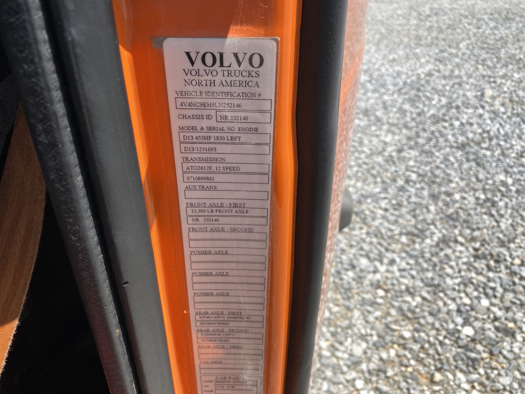 T/A, 455 HP Volvo D13 engine, A/T, 40K rears, air ride, 12,350 lb. front, 235" W/B, Mid Roof, 11R22.5 tires