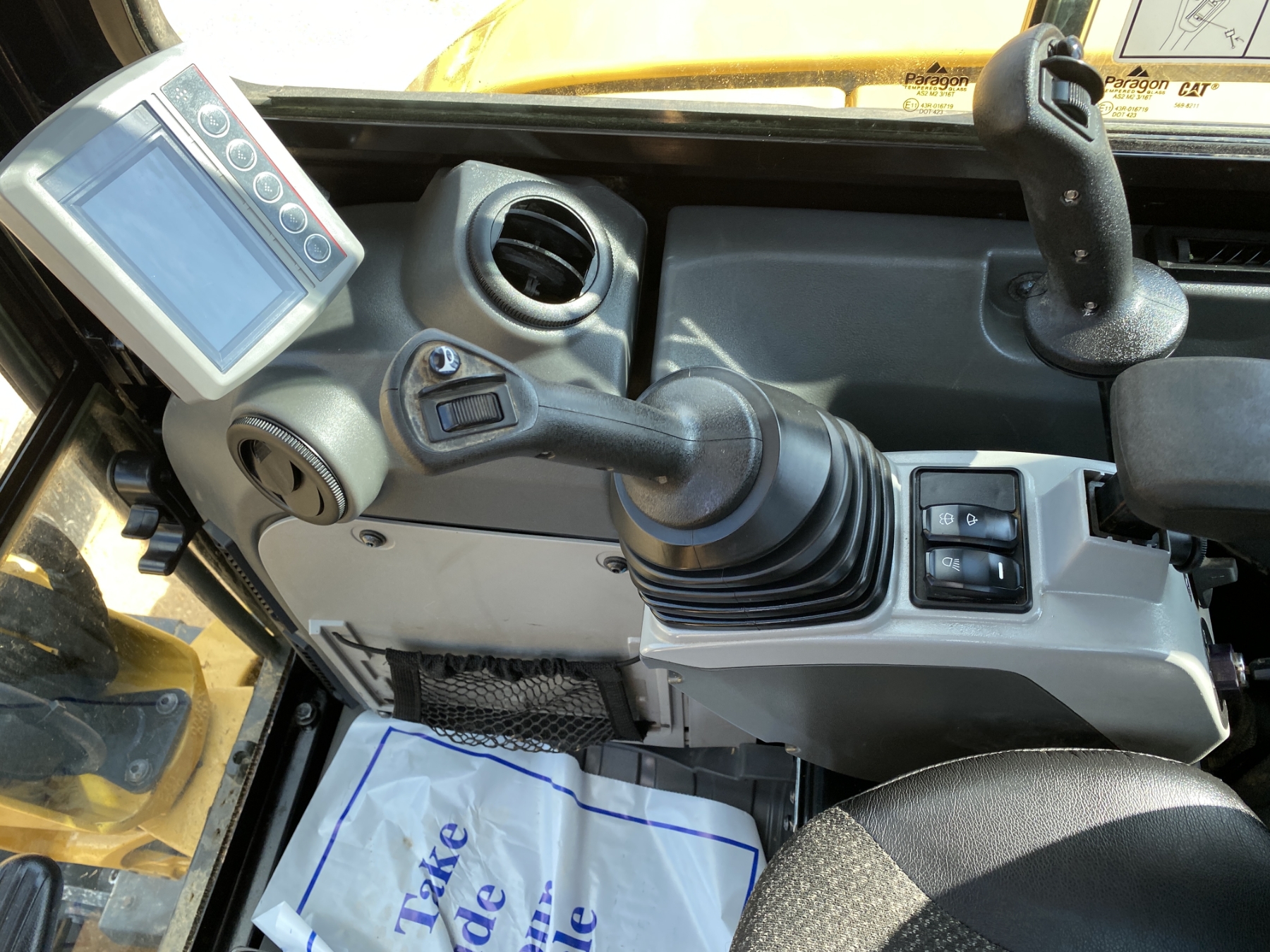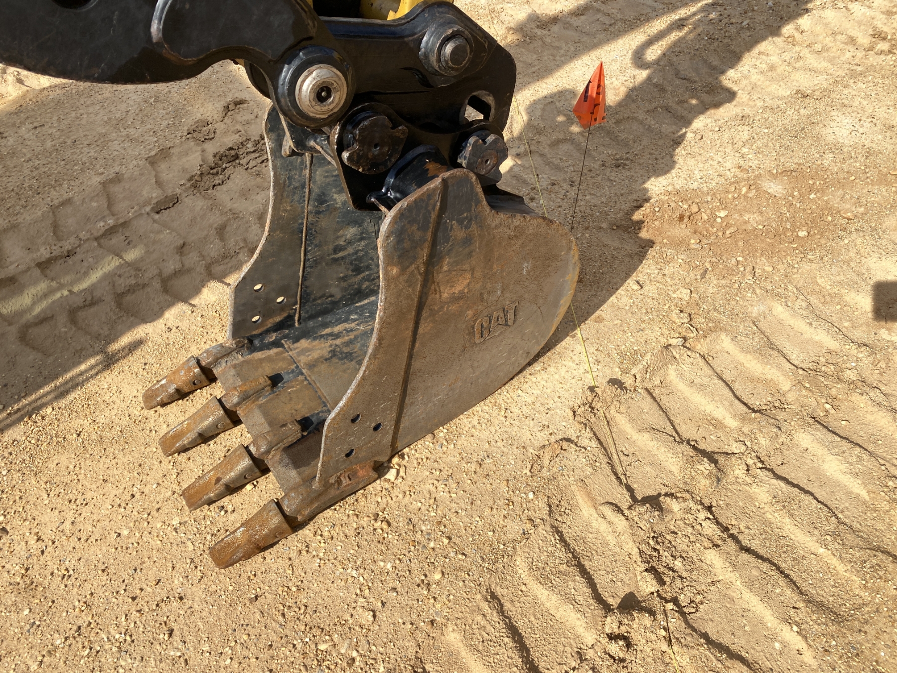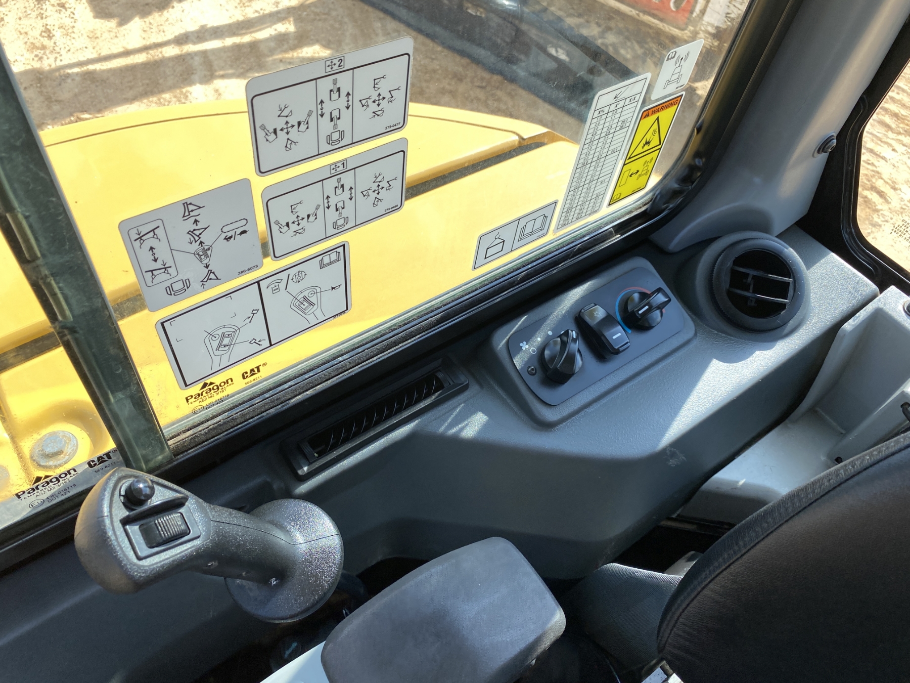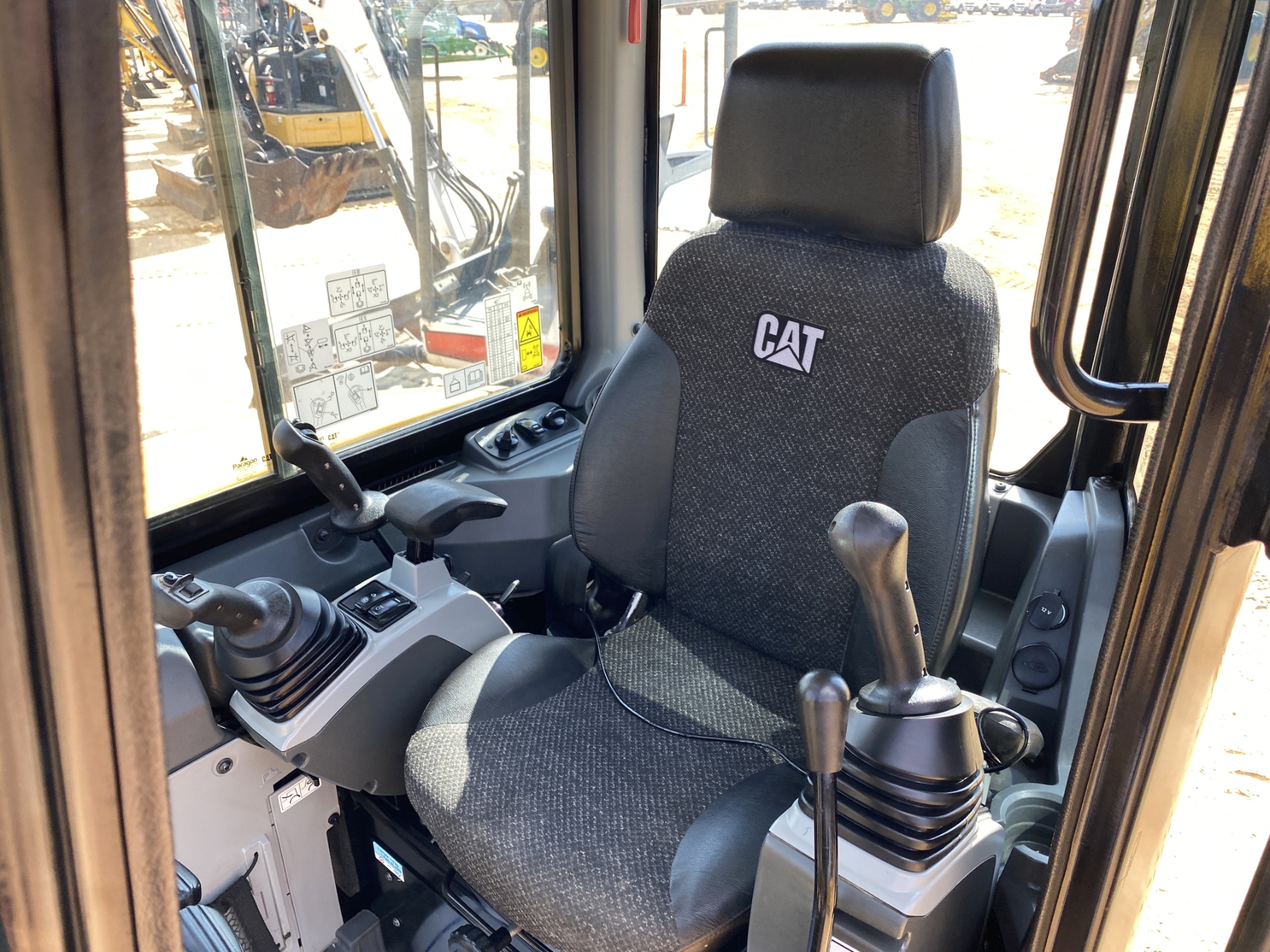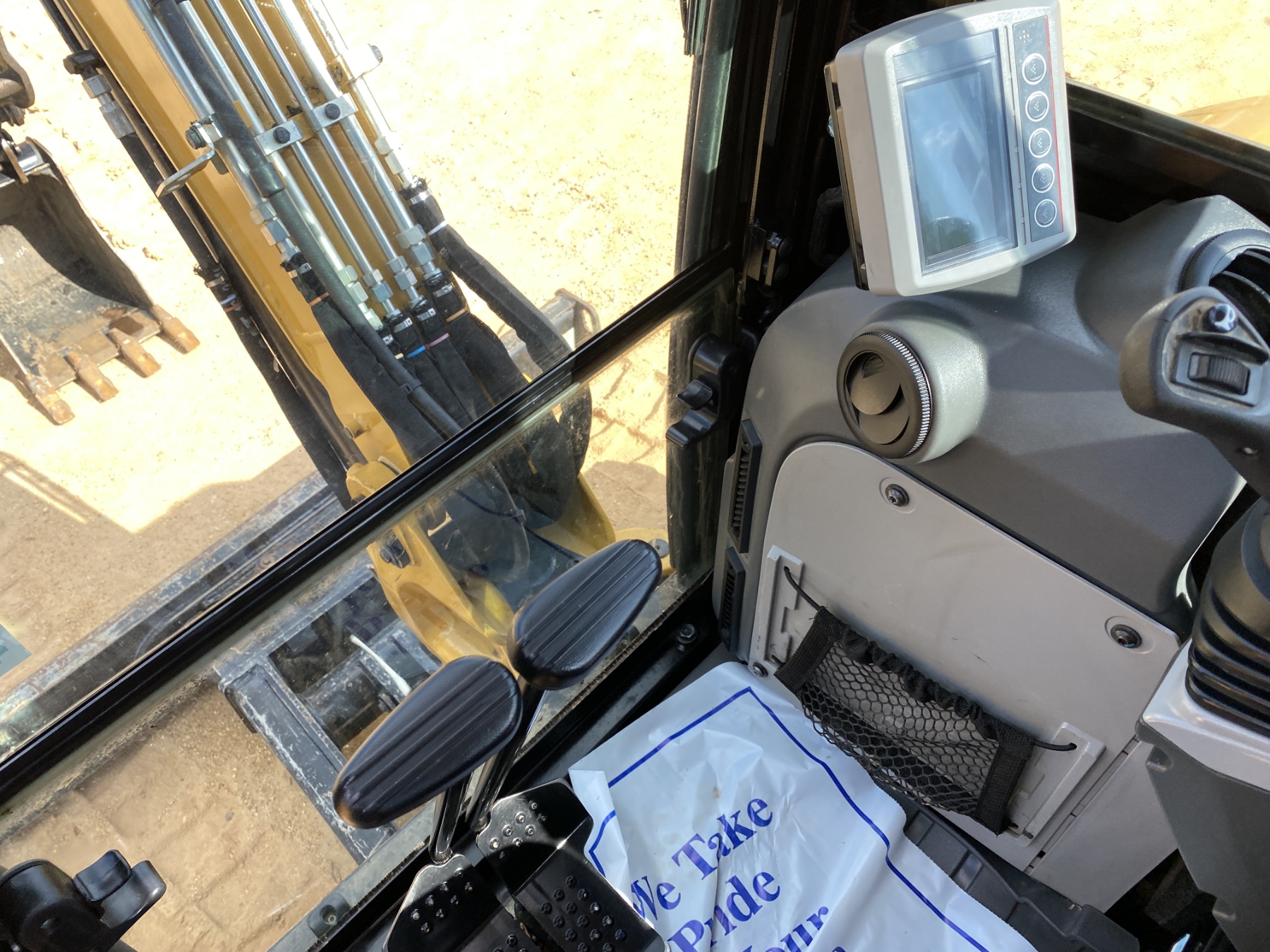 5' 6" stick, 16" bucket, hyd thumb, aux hyd, blade, cab, A/C
