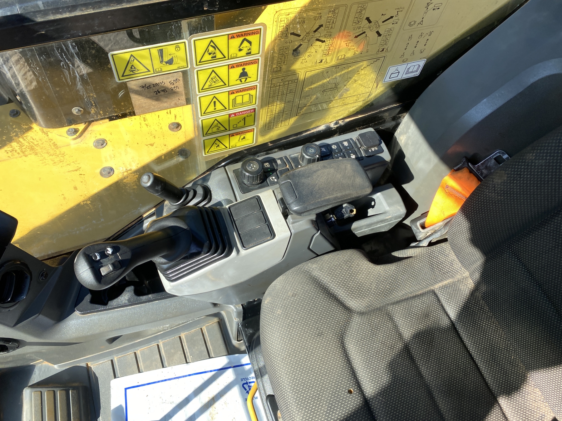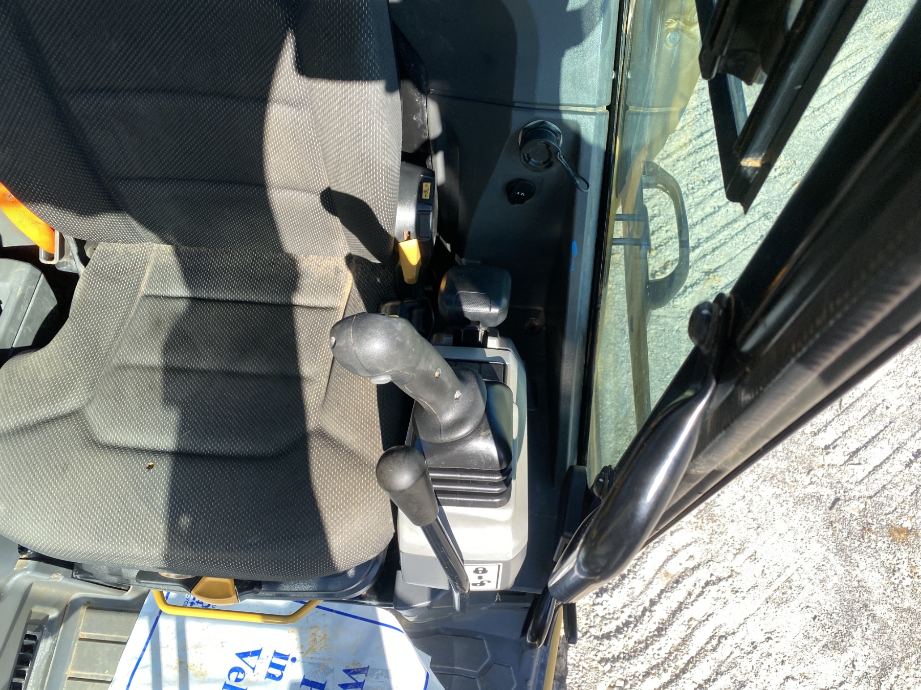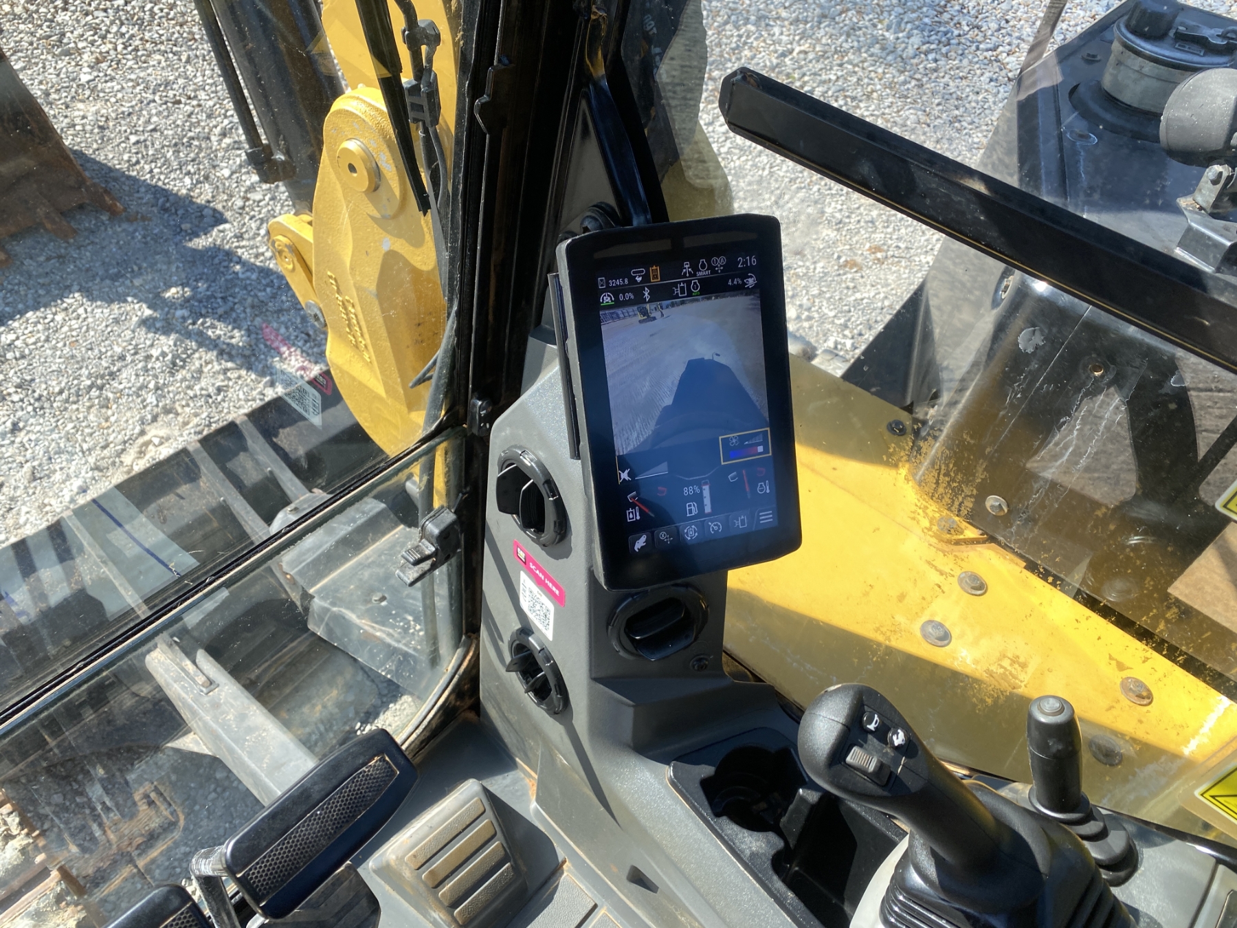 7' 9" stick, 36" bucket, hyd quick coupler, hyd thumb, aux hyd, blade, rubber pad inserts, cab, A/C