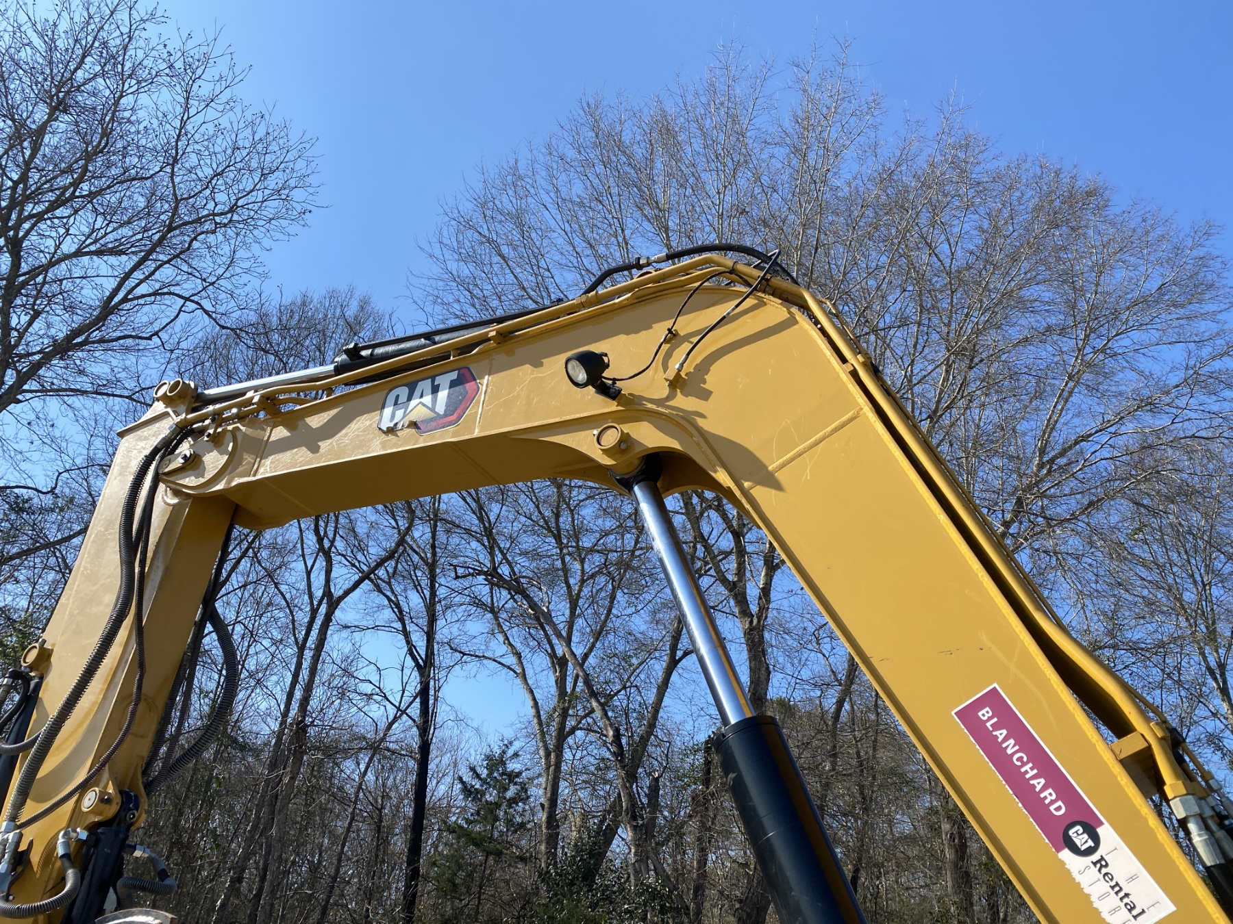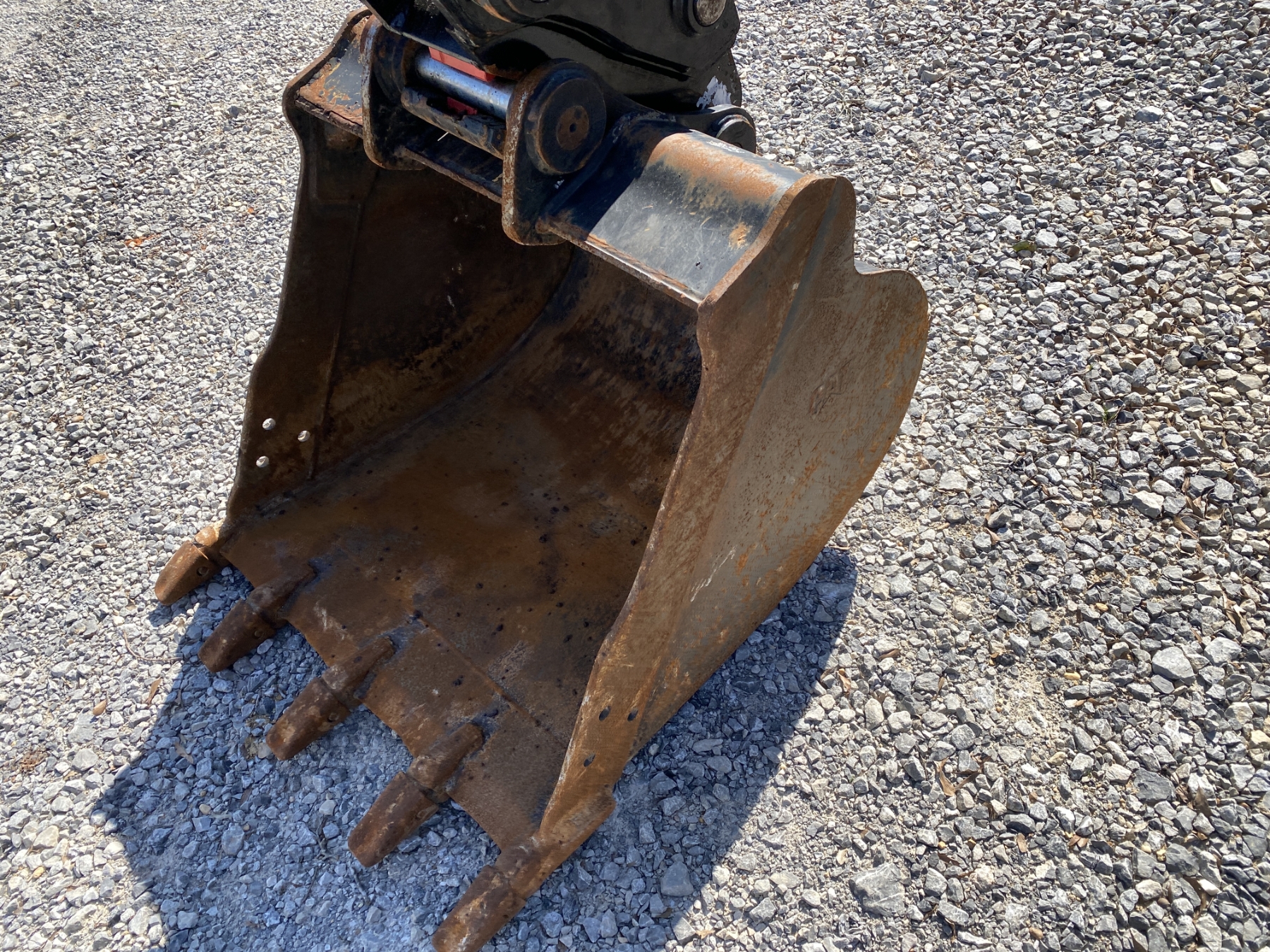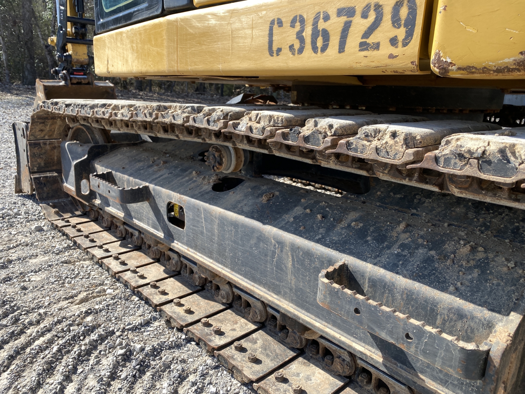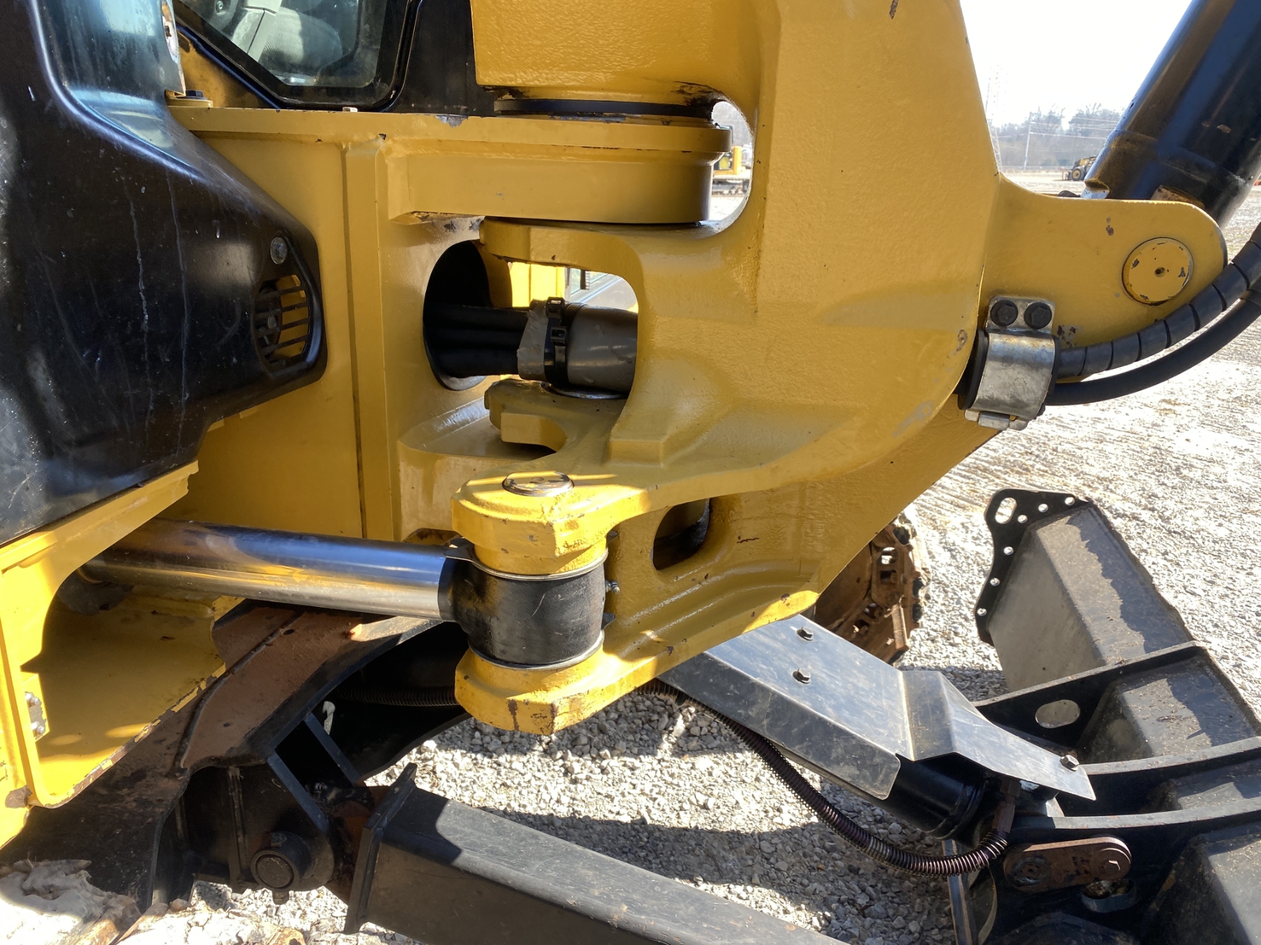 7' 9" stick, 36" bucket, hyd quick coupler, hyd thumb, aux hyd, blade, rubber pad inserts, cab, A/C