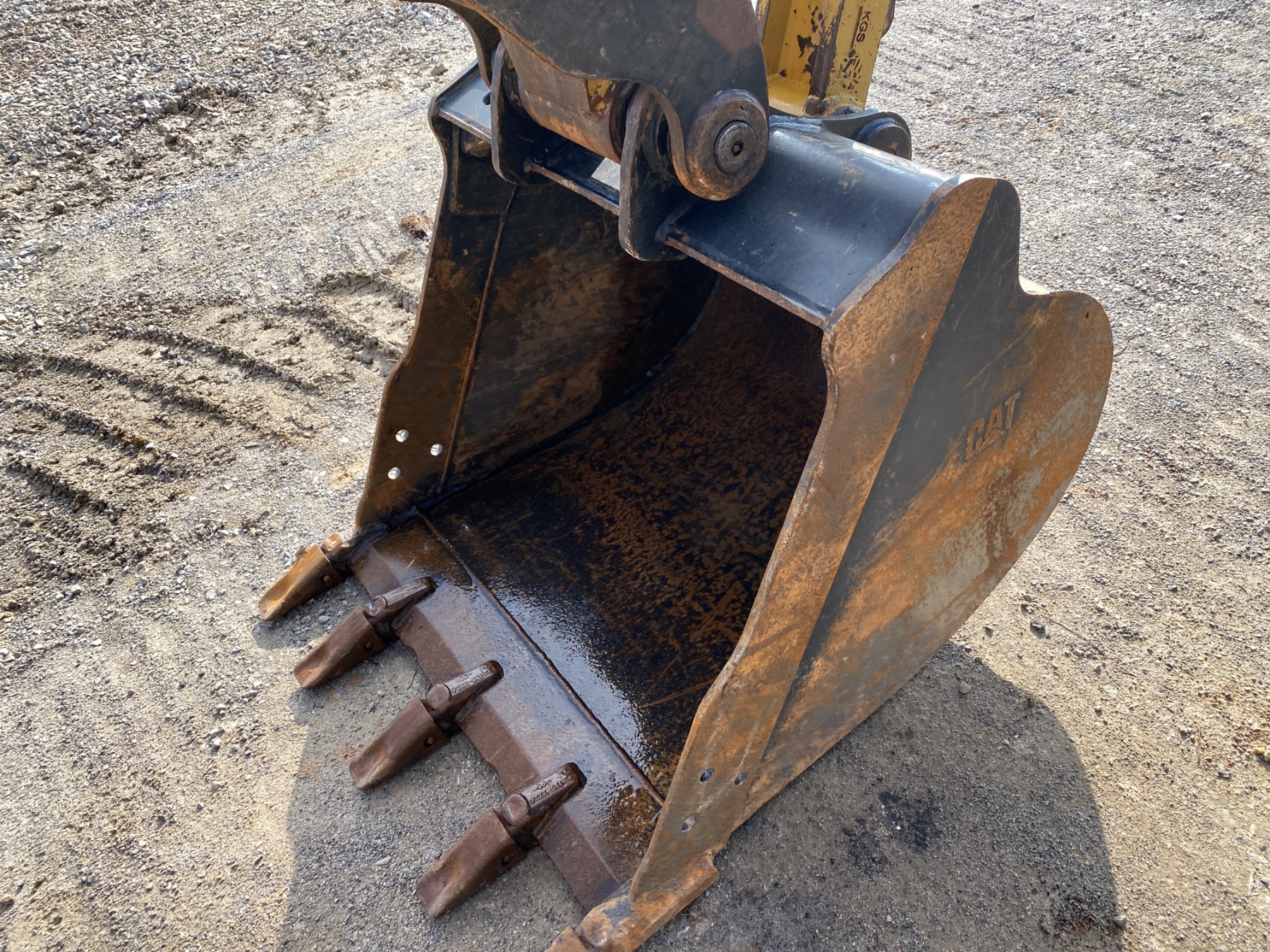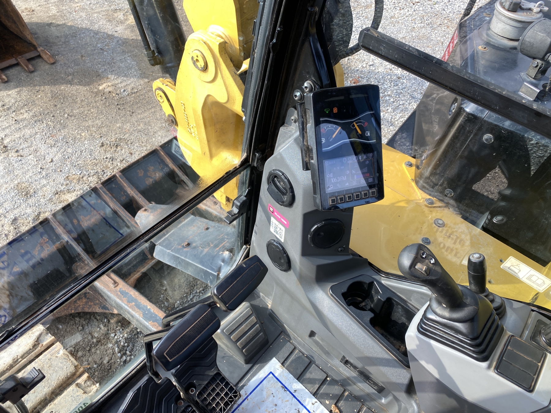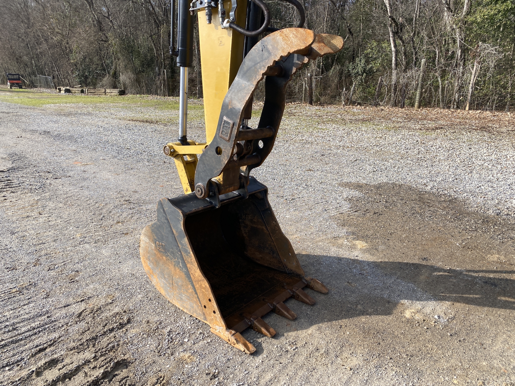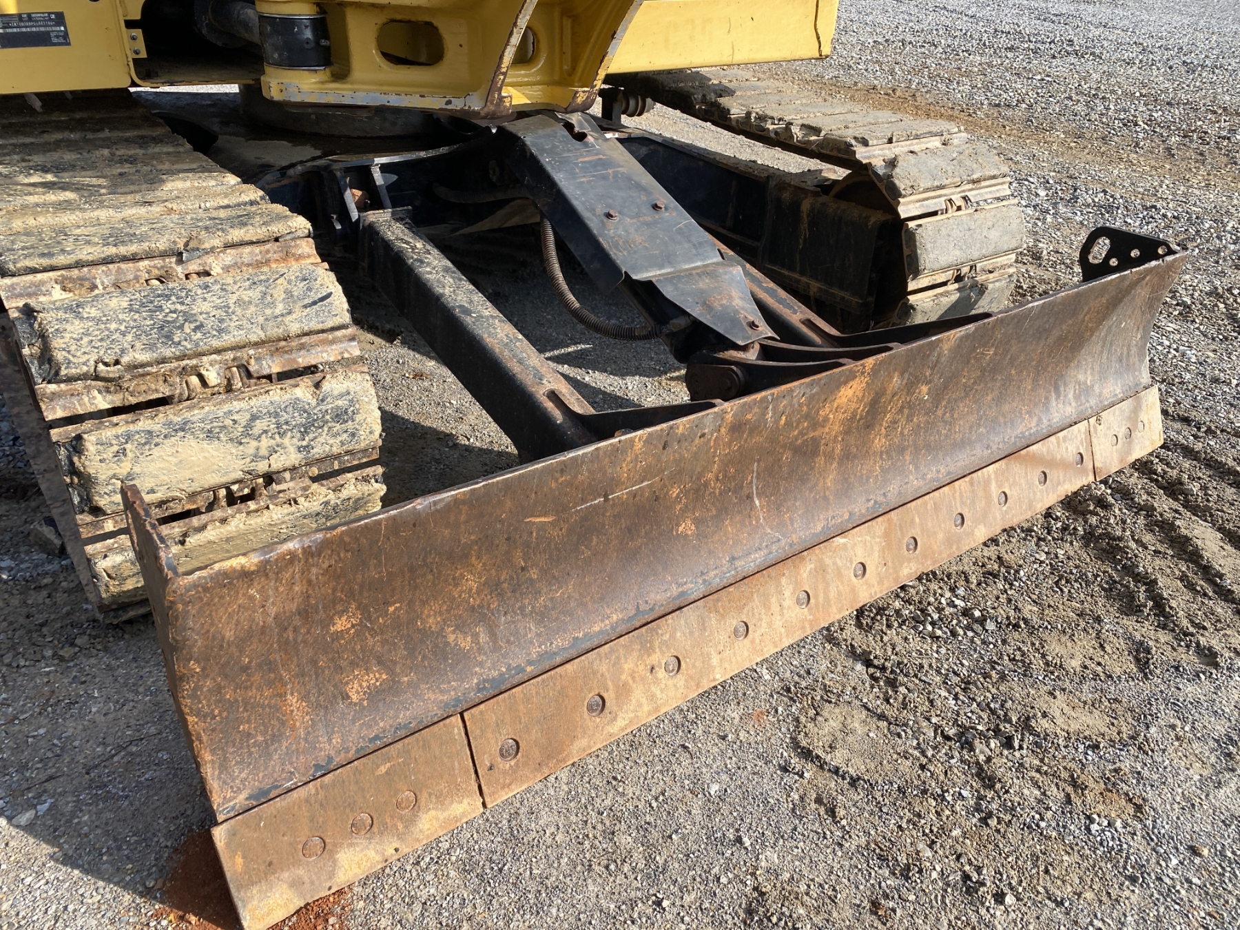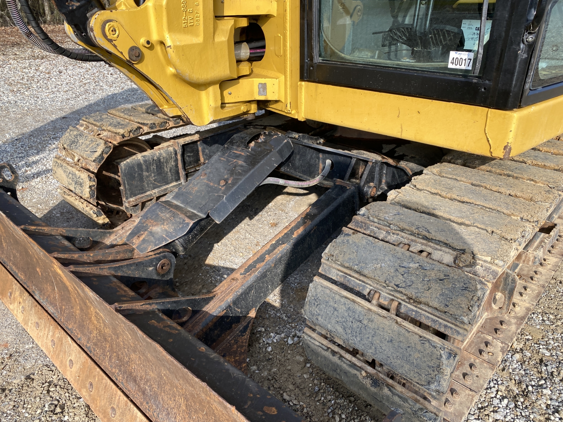 7' 9" stick, 36" bucket, hyd thumb, aux hyd, blade, rubber pad inserts, cab, A/C