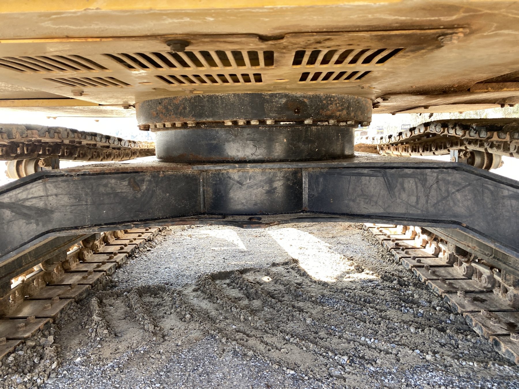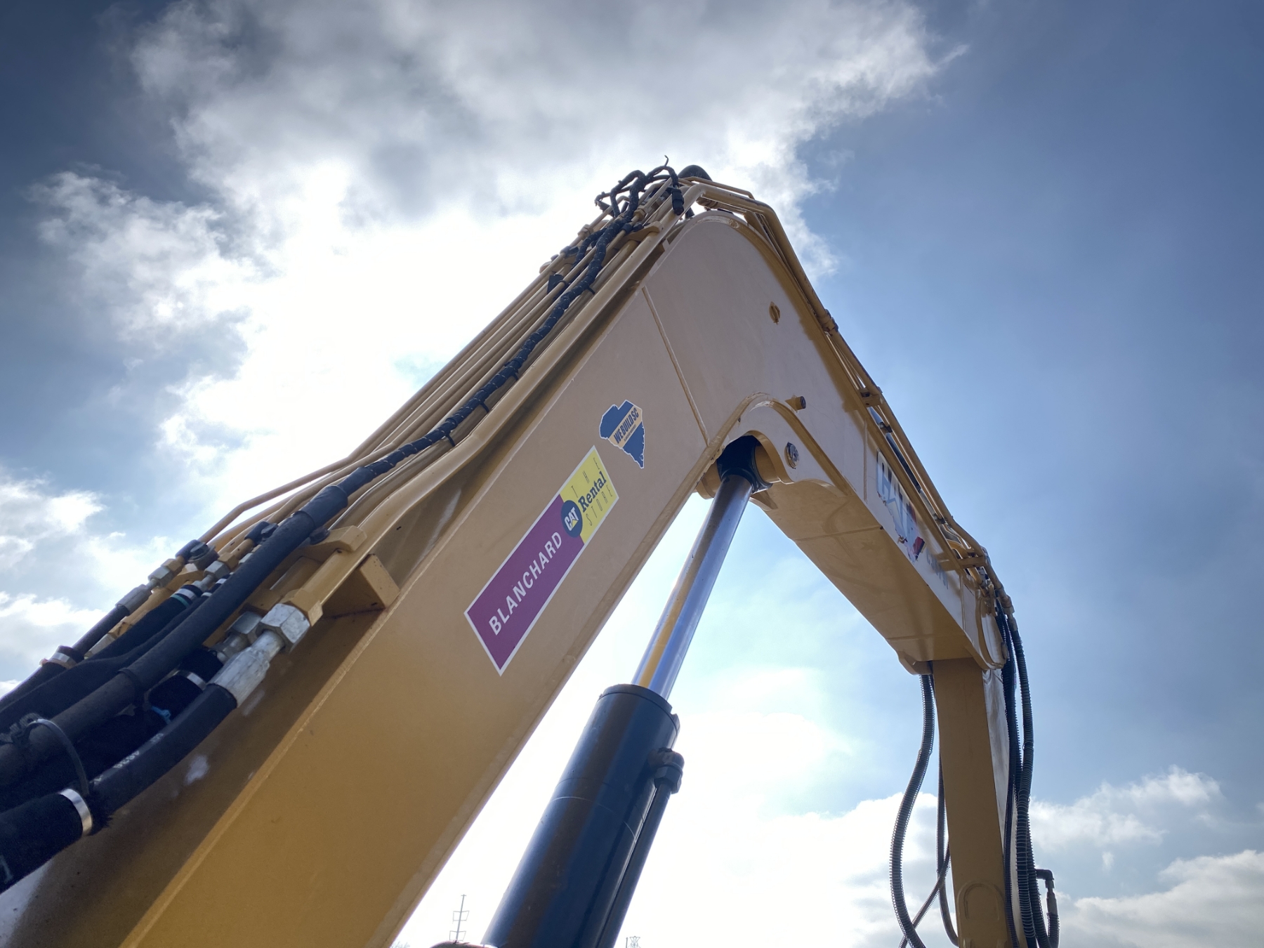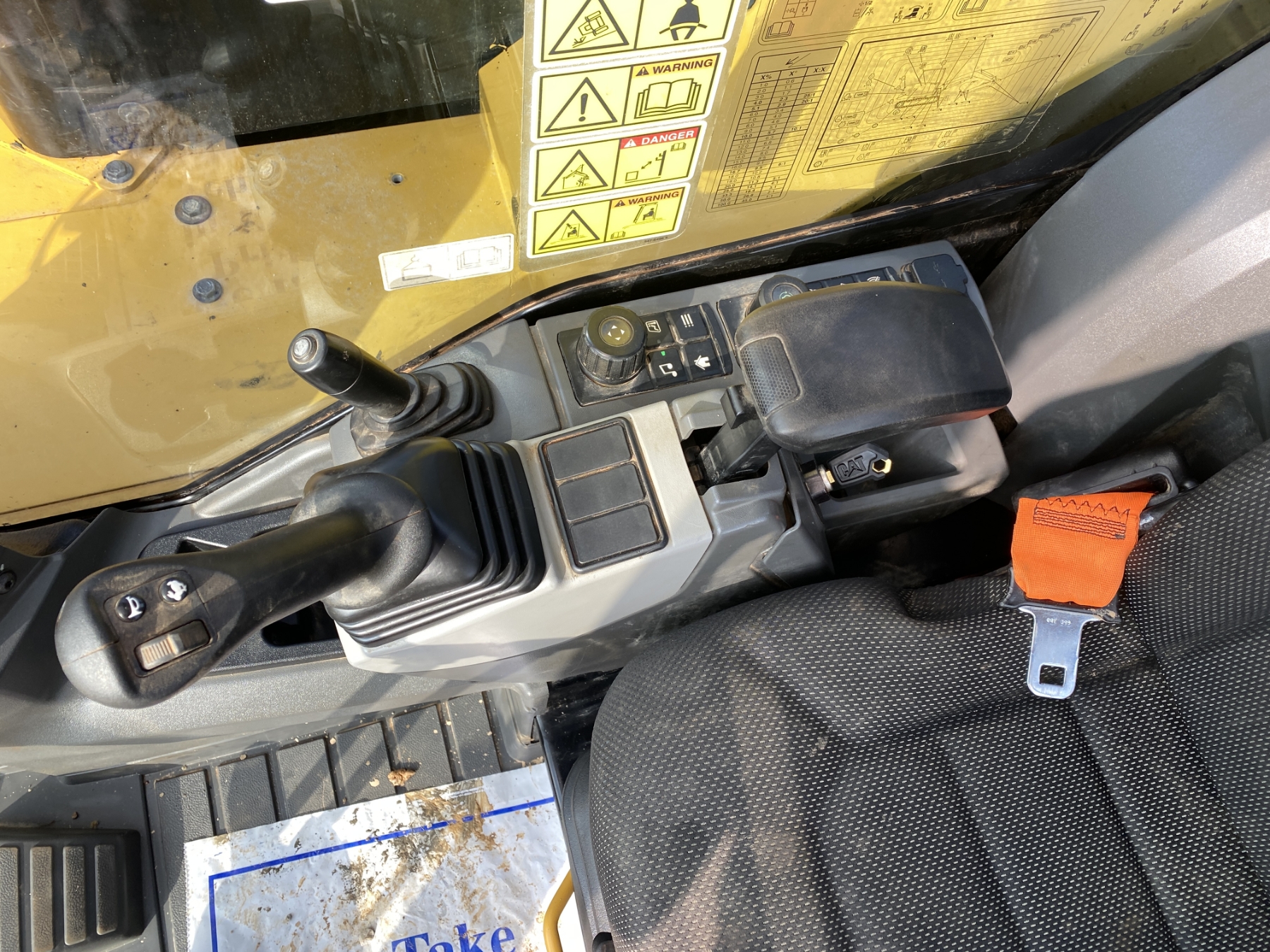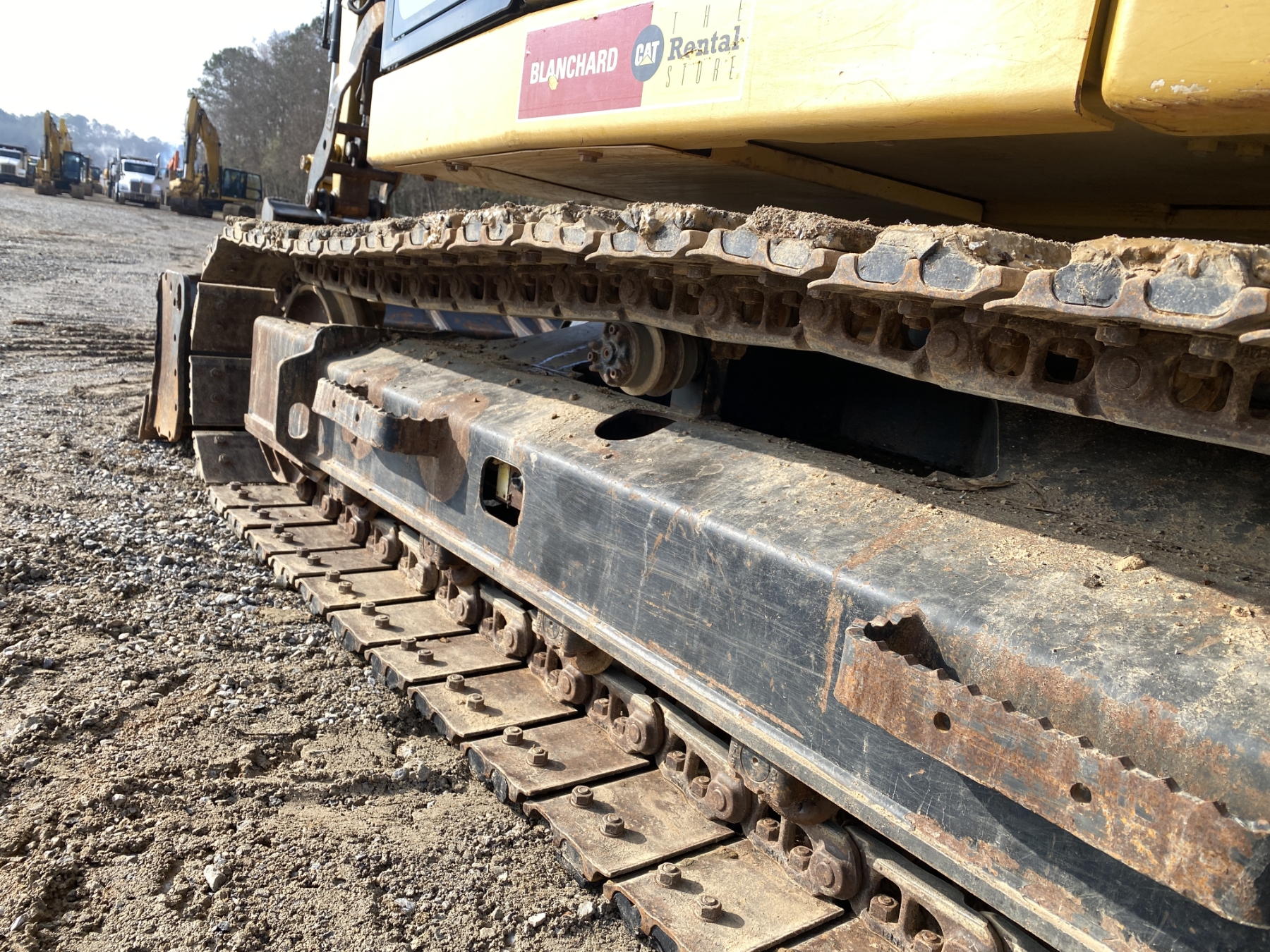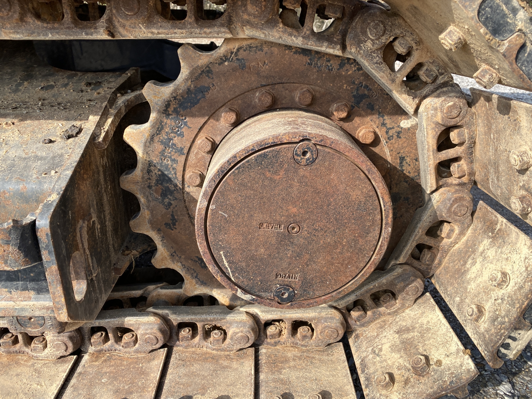 7' 9" stick, 36" bucket, hyd thumb, aux hyd, blade, rubber pad inserts, cab, A/C