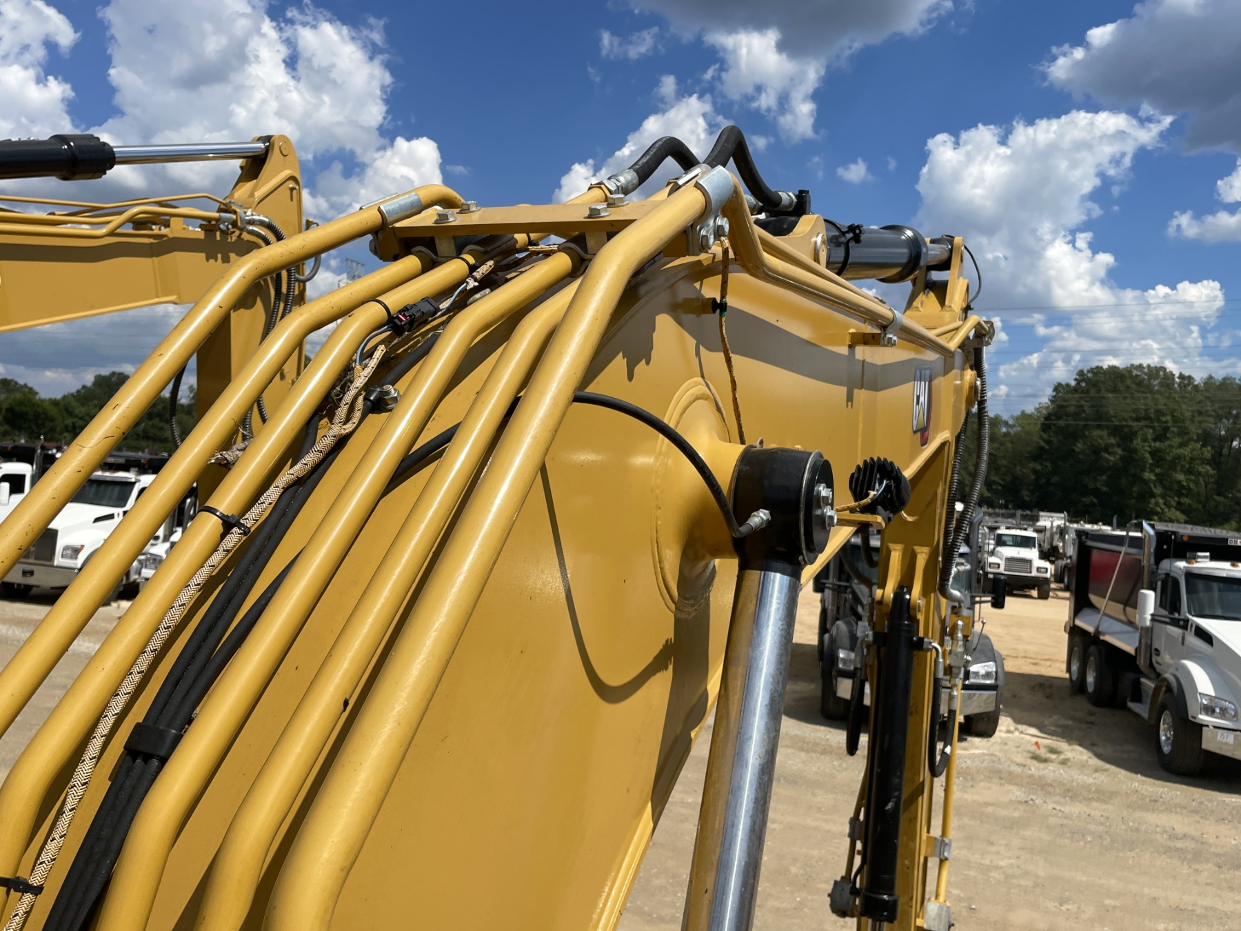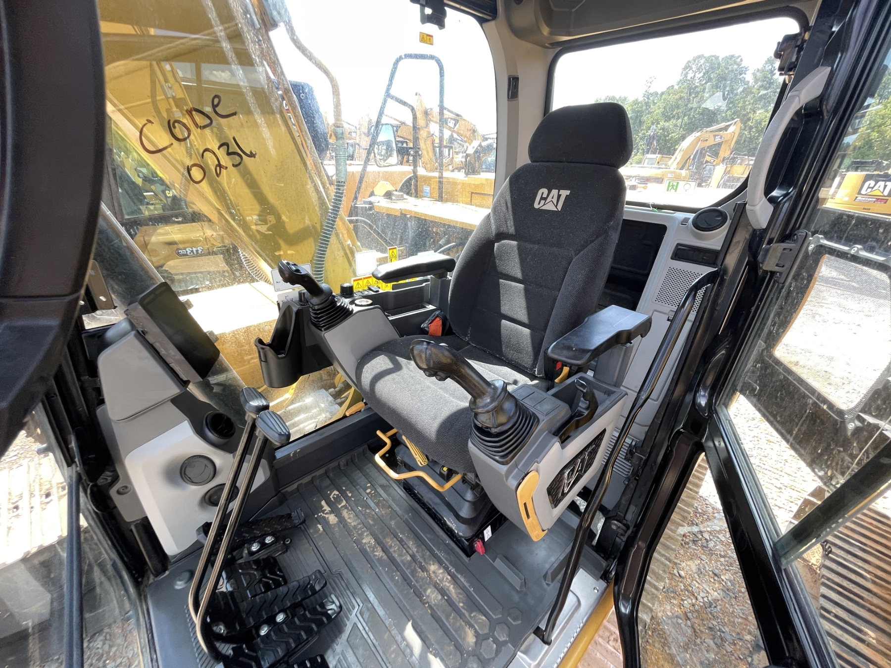 9' 3" stick, 36" bucket, hyd thumb, aux hyd, cab, A/C