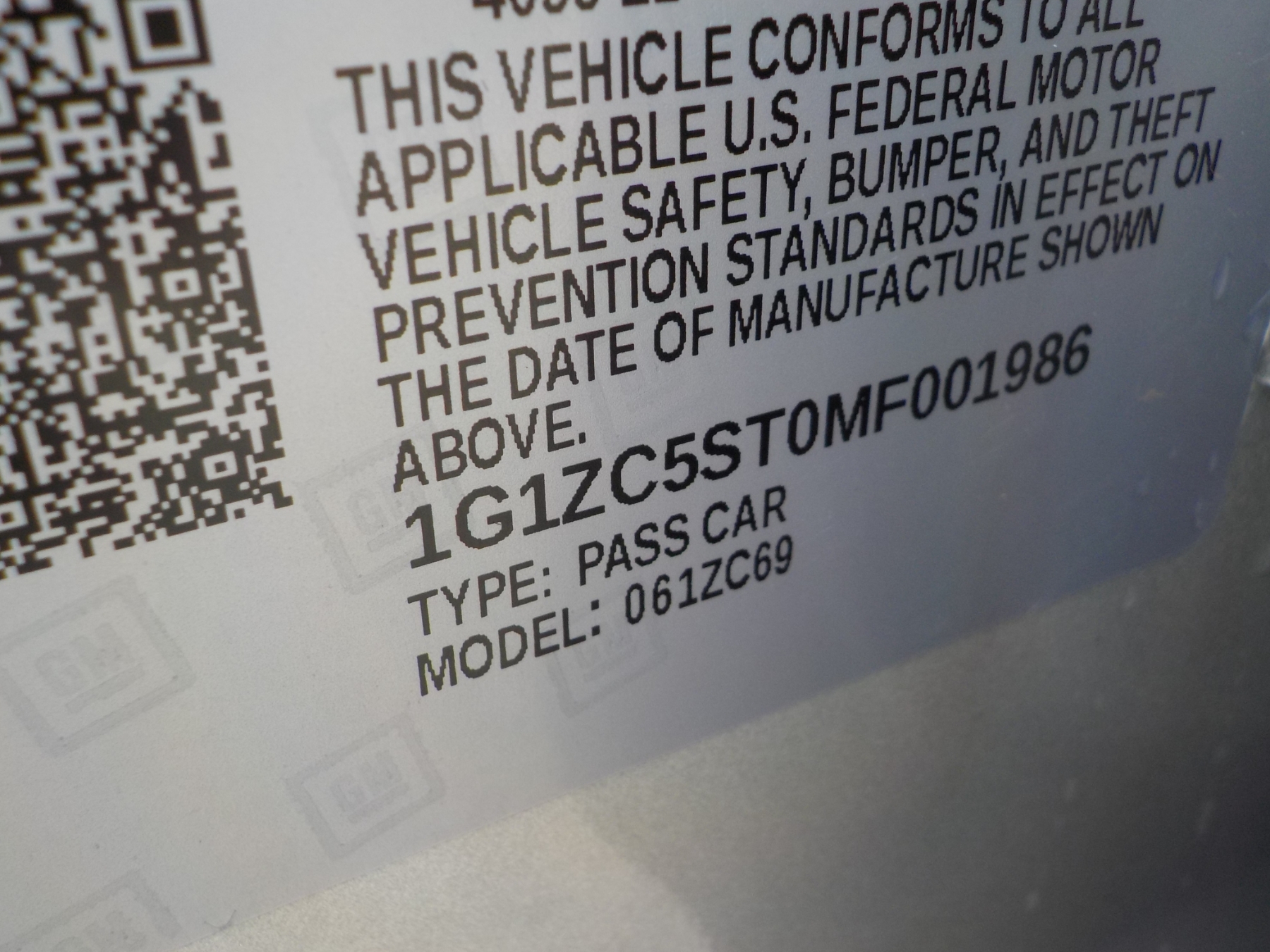 Vehicle ID Number: 1G1ZC5ST0MF001986