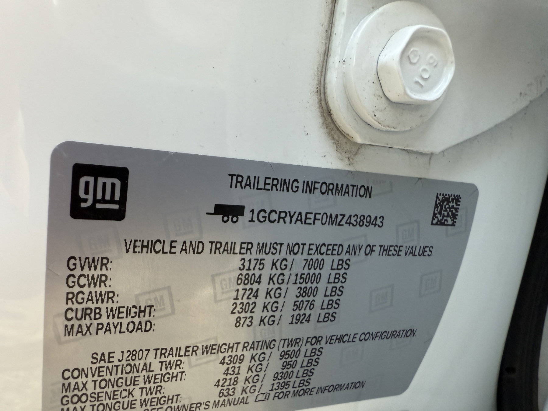 Vehicle ID Number: 1GCRYAEF0MZ438943
