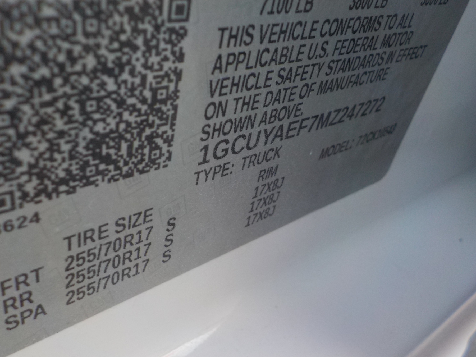 Vehicle ID Number: 1GCUYAEF7MZ247272